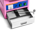 Maszyna do waty cukrowej z pokrywą marki Forgast. Obudowa maszyny wykonana z blachy malowanej proszkowo na przyciągający wzrok kolor różowy. Zdejmowana misa - ze stali nierdzewnej. Przezroczysta pokrywa z tworzywa o wymiarach 46,2x46,2x20 cm.