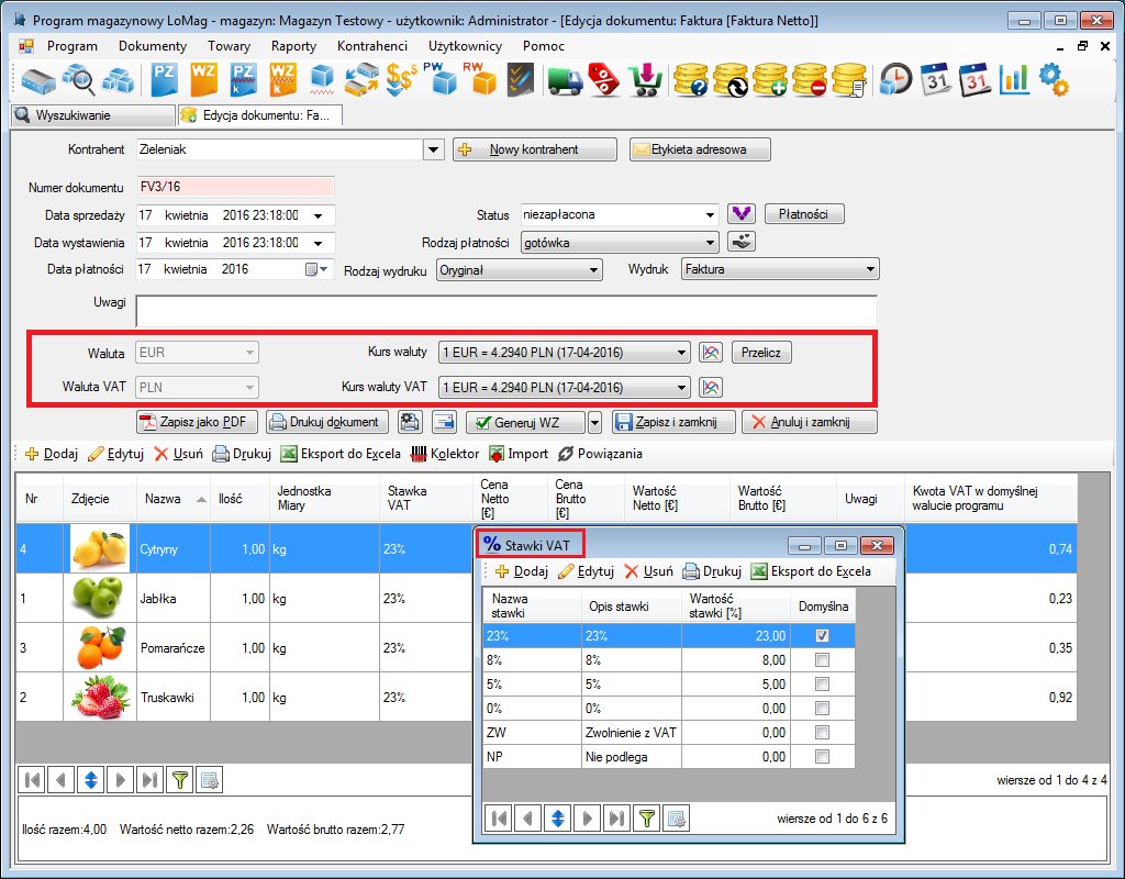 Program LoMag został stworzony z myślą o szybkim i łatwym wystawianiu dokumentów księgowych: faktury VAT, rachunki, paragony, KP, KW, zaliczkowe, zakupowe, korygujące, proforma, faktury walutowe. Program doskonale sprawdza się w różnych firmach o zróżnicowanych profilach działalności. Łatwość jego obsługiwania jest wielką zaletą na tle konkurencji.