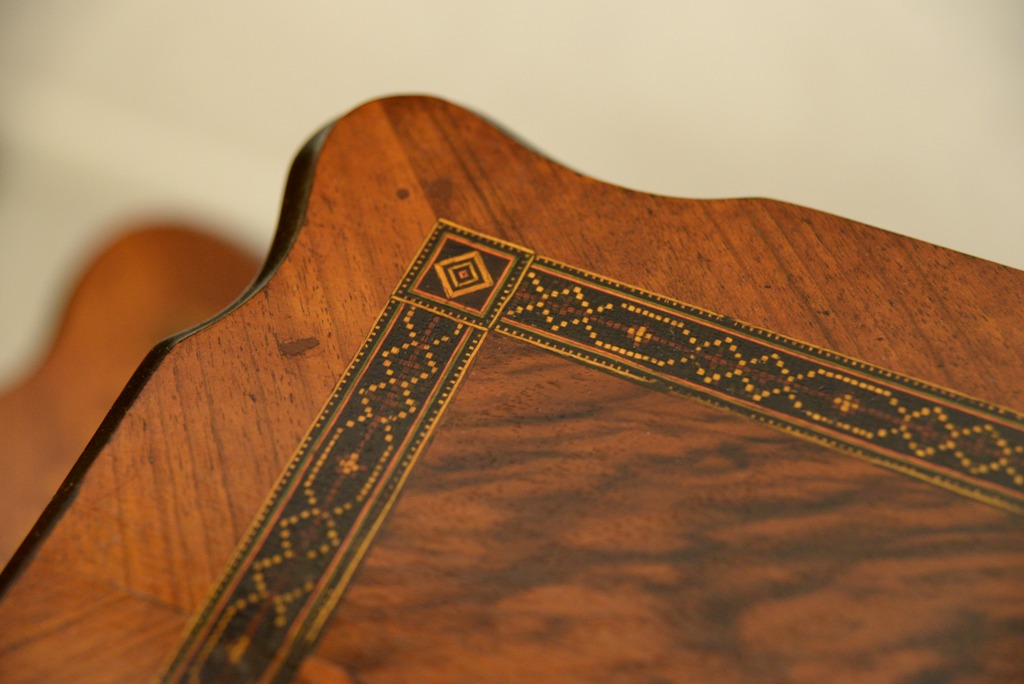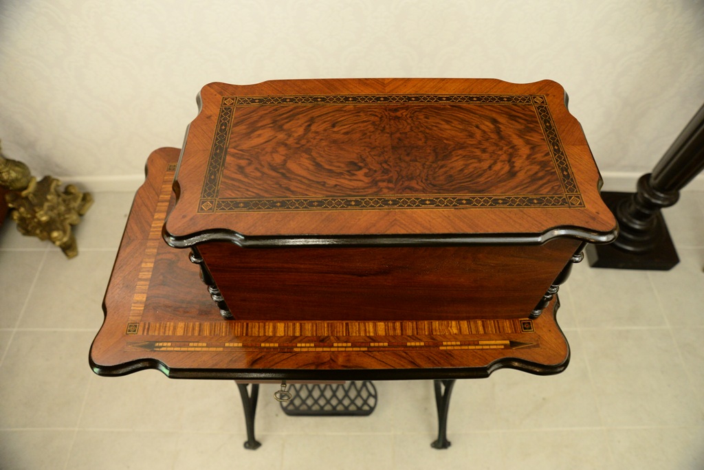 Jest to na prawdę wyjątkowy egzemplarz zachowany w przepięknym stanie, poddany renowacji aby wyciągnąć z niego kolor... Intarsje były mocno przybrudzone, przyćmione, w tej chwili odzyskały głębię...