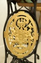 Sam stolik żeliwny został poddany piaskowaniu, odświeżone zostały kolory - czarny oraz złoty.