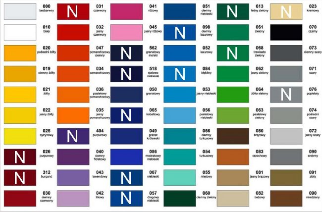 Wzornik kolorów jak obok