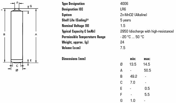 другие обозначения: LR6 / AA / R6 / MN 1500 / Mignon / AM3 / E91