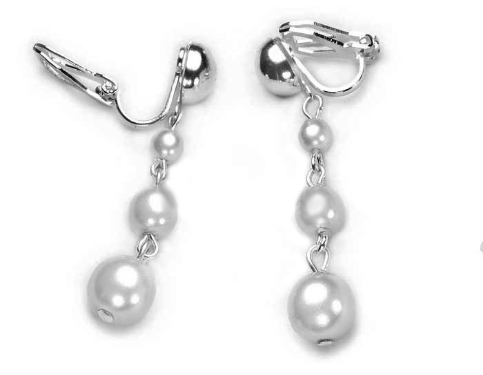 Klasyczne białe klipsy perłowe, stopniowane ręcznie z jablonexowej szklanej perły, zawieszone na klipsach niealergizujących.