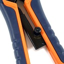 Обжимной станок оборудован инструмент для зачистки проводов и фиксатор возврата обжимного устройства.