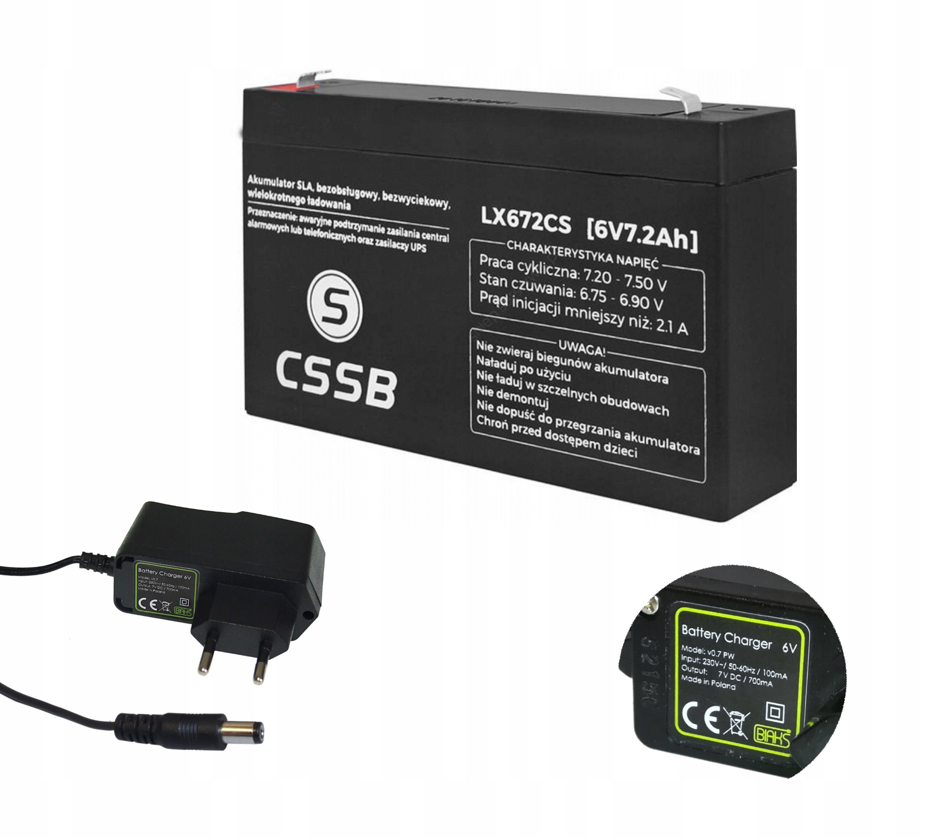 UWAGA: Ładowanie takiej baterii prostownikiem samochodowym może spowodować uszkodzenie lub skrócenie żywotności. Zalecamy stosowanie tylko dedykowanych ładowarek.