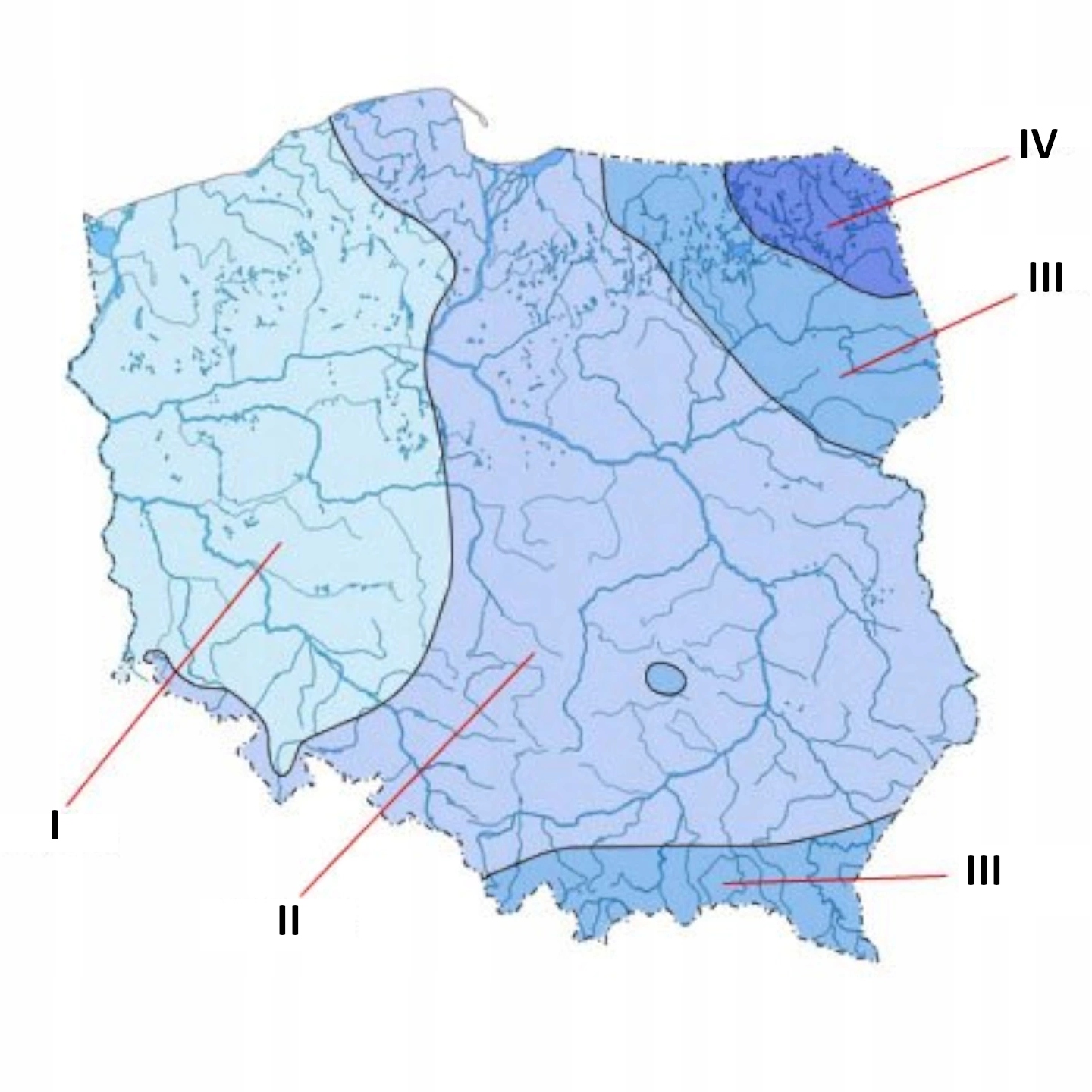 Поверхность Польский разделен на зоны промерзания, от И до IV.