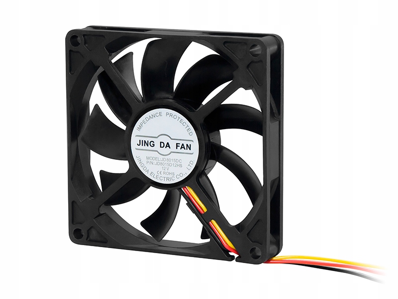 Wymiar: 80 x 80 x 15 mm Napięcie znamionowe: 12VDC Pobór prądu: 0,12A Liczba obrotów: 3200 rpm Poziom hałasu: 31,4dBA Łożysko ślizgowe 3 przewody o długości ok. 250mm Waga: 30g