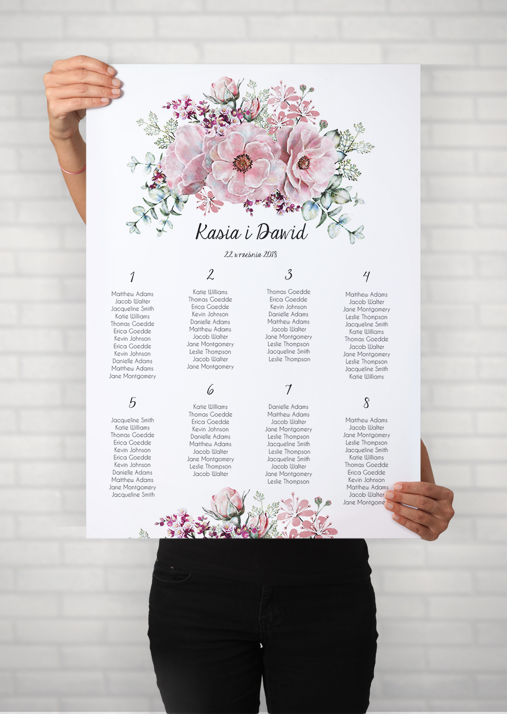 Каждый из них мы разрабатываем индивидуально, на основе загруженного списка гостей и макета столов.