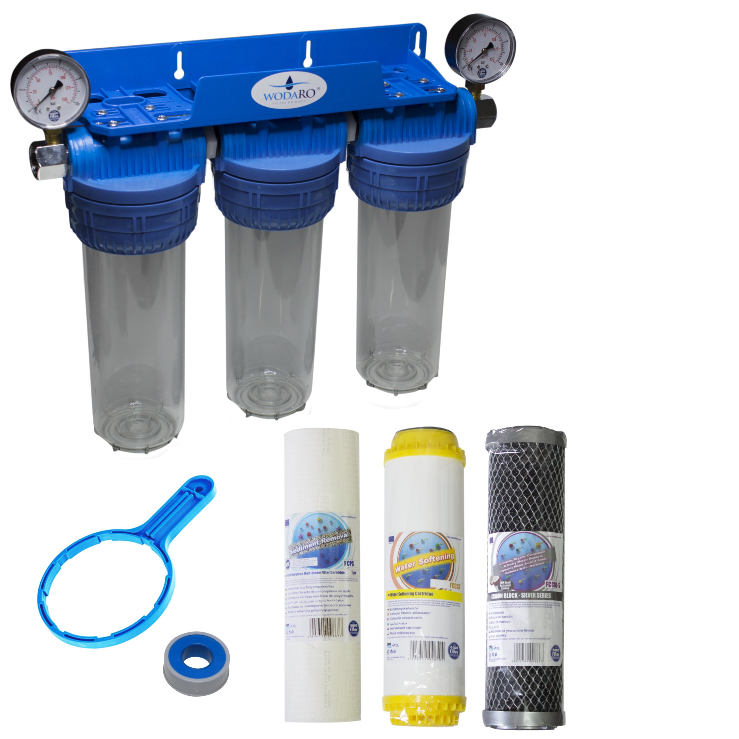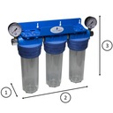 Znajdujące się w zestawie manometry (ciśnieniomierze) umożliwiają odczyt wartości ciśnienia (przydatna funkcjonalność, ułatwiająca określenie momentu gdy następuje konieczność wymiany wkładów).