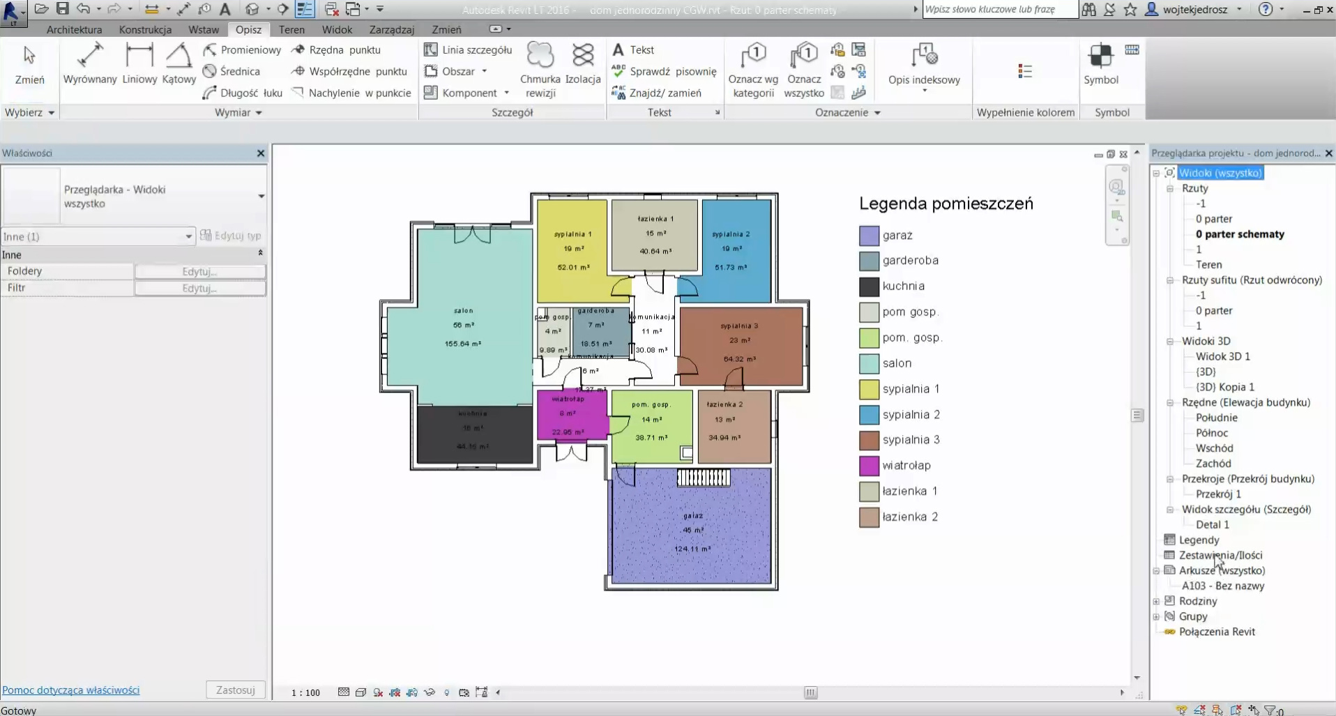 19. Pomieszczenia, legendy, zestawienia pomieszczeń