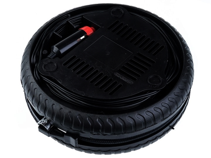 Wąż do pompowania oraz kabel do podłączenia do zapalniczki samochodowej są zwijane, w specjalnych prowadnicach w obudowie kompresora.