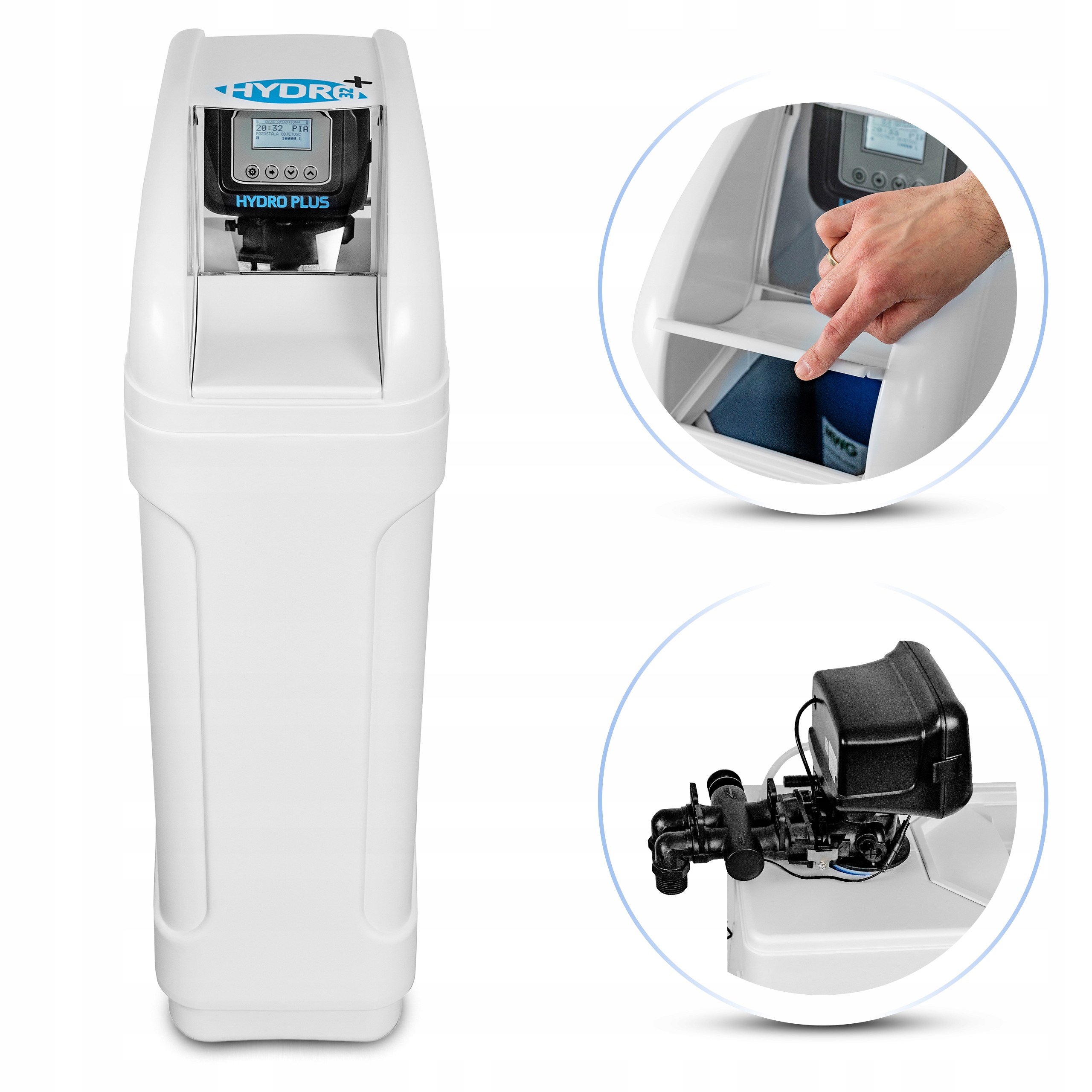 Оборудование Hydro Plus оснащено современным и полностью автоматический регулятор громкости Hydro Plus с большим экраном с подсветкой, встроенной сигнализацией низкий уровень соли, внутренний счетчик воды (возможна калибровка импульсов) и управление на языке польским. Возможность выбора одного из 6 видов регенерации слоя и ручной коррекциидлительность отдельных его циклов.