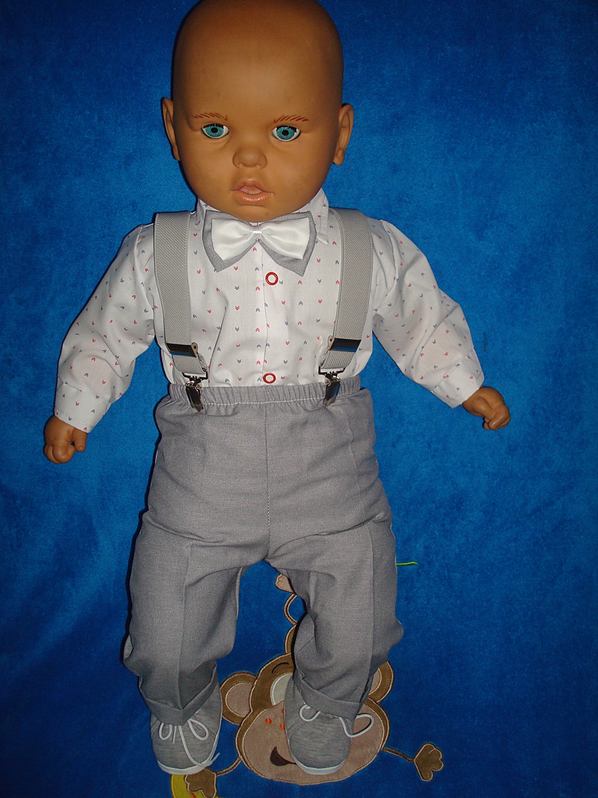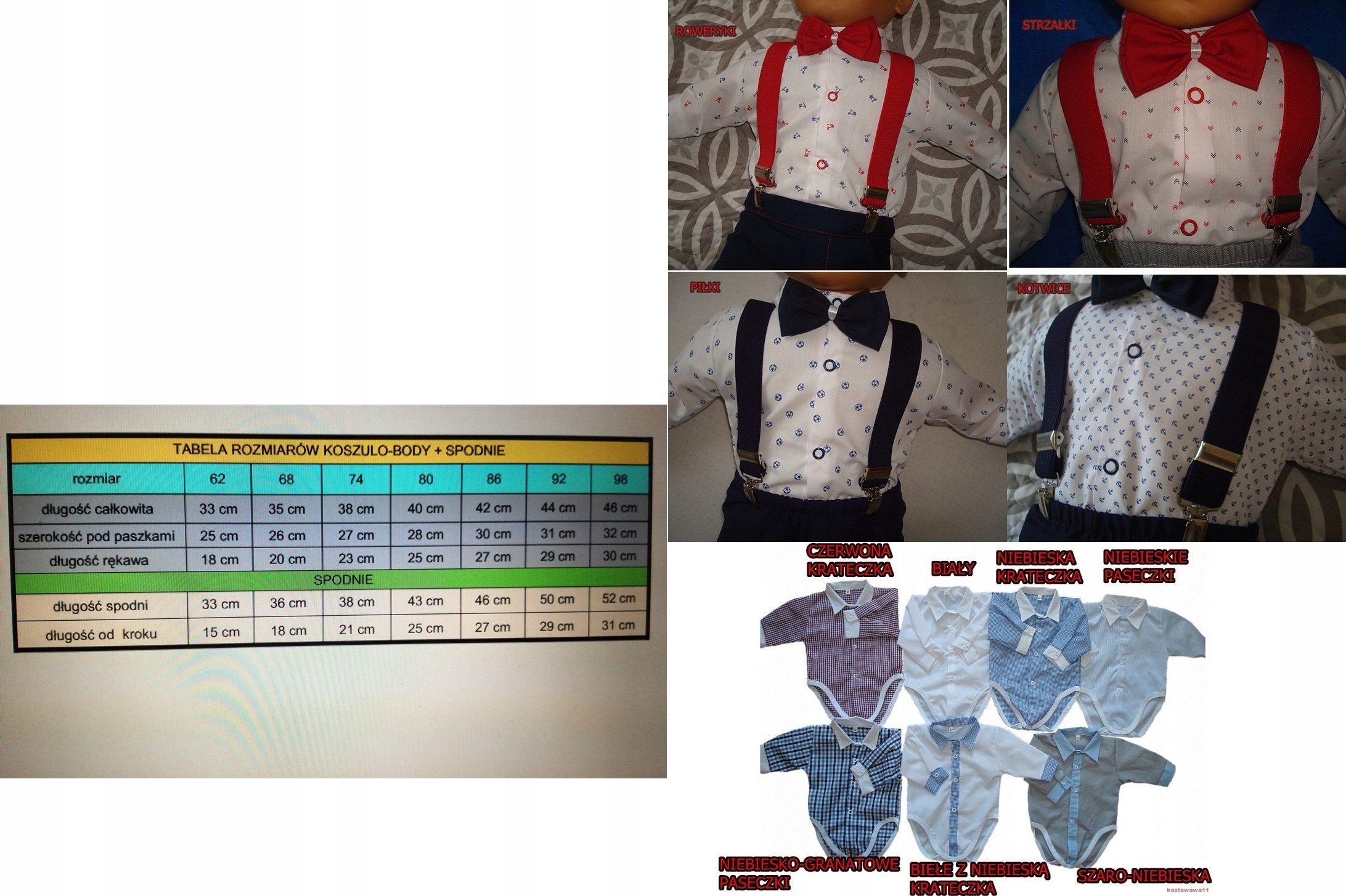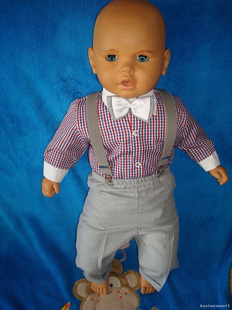 Na tej aukcji oferujemy koszulę typu body+spodnie+szelki+muszka.
