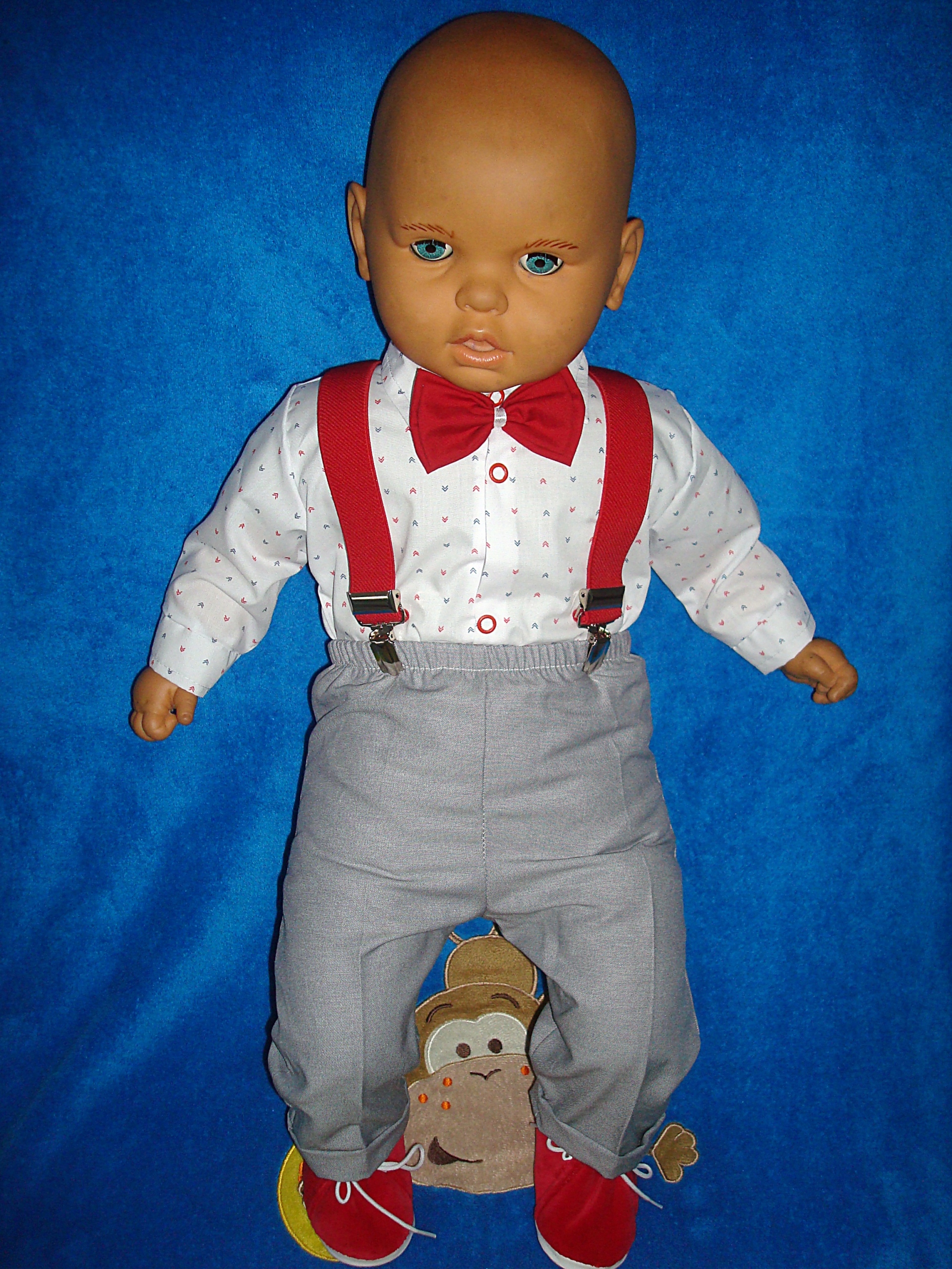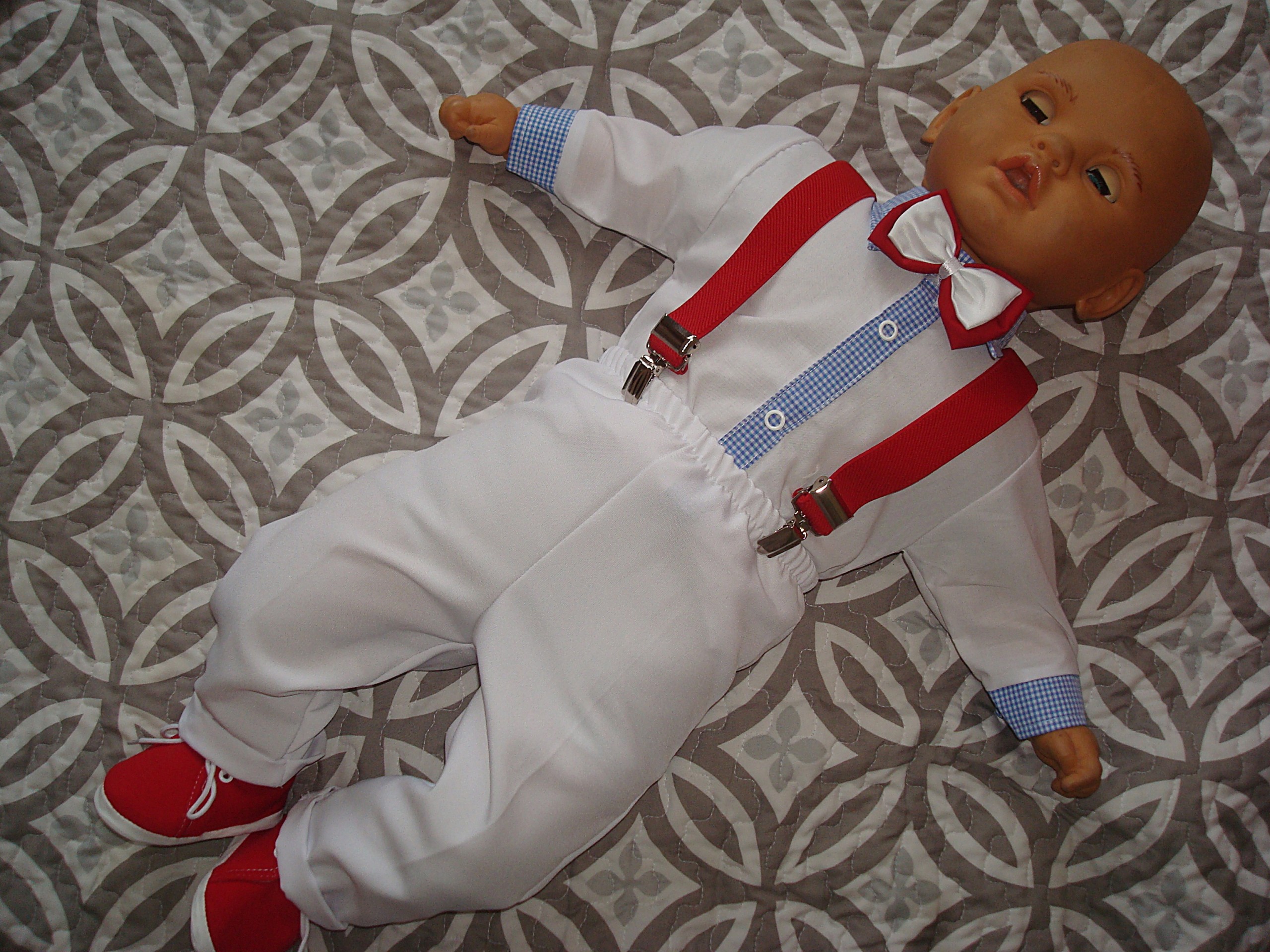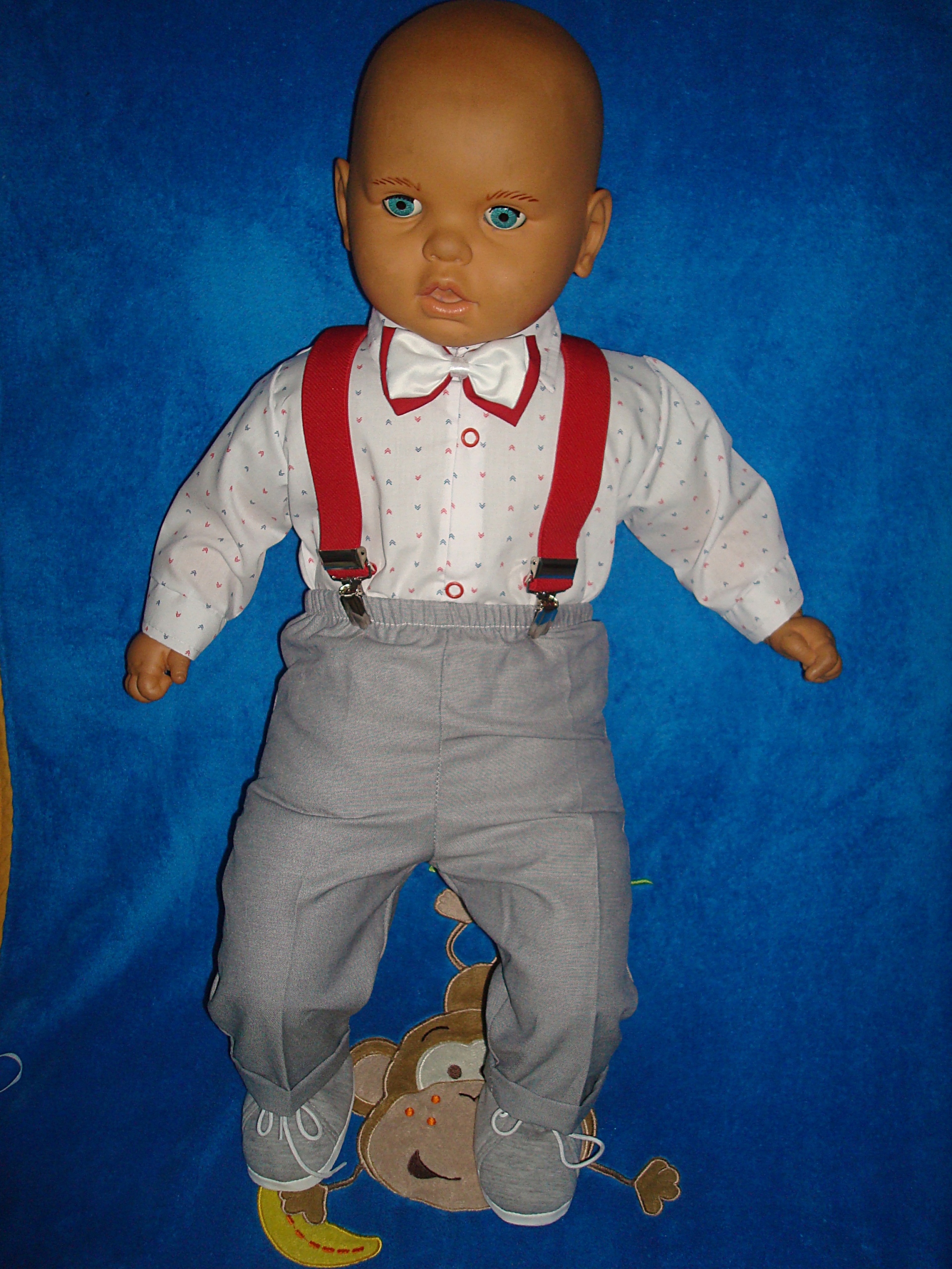 Na tej aukcji oferujemy koszulę typu body+spodnie+szelki+muszka.