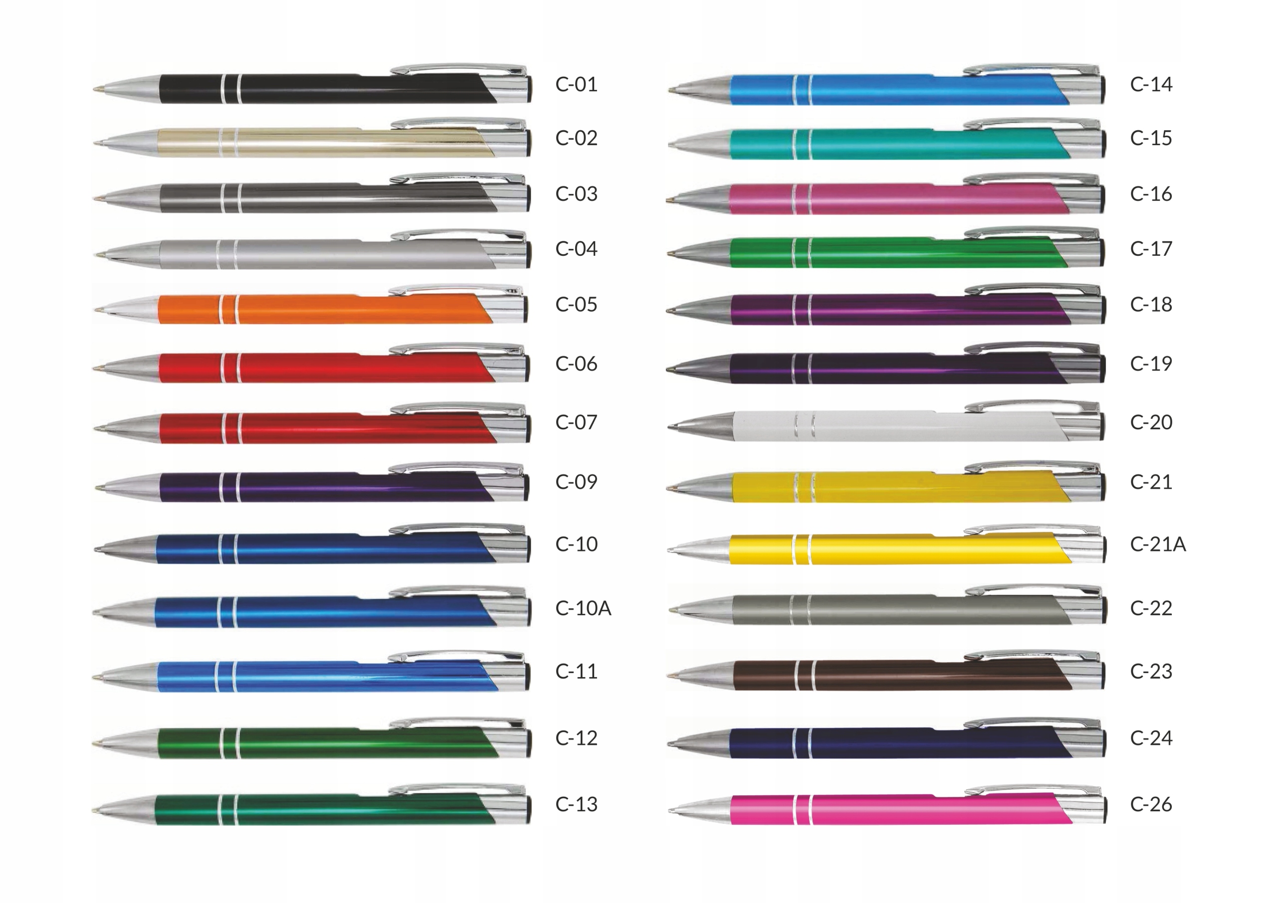 Przedstawione kolory długopisów są jedynie poglądowe, a faktyczny odcień może odbiegać od tego przedstawionego na aukcji!