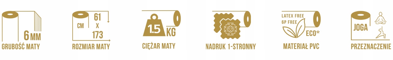 Pielęgnacja maty: Maty do jogi z nadrukiem uwalniają silny, ale nieszkodliwy zapach po pierwszym rozpakowaniu. Aby pozbyć się go szybciej, rozwiń i wywietrz matę przez 2-3 dni przed użyciem. Możesz też umyć ją specjalnym płynem do mat lub wilgotną szmatką z łagodnym detergentem. Matę należy suszyć na płasko. Mata może blaknąć i stać się krucha, a w efekcie bezużyteczna, jeśli będzie wystawiona na działanie słońca przez zbyt długi czas. Zalecamy przechowywanie maty w torbie lub pokrowcu na matę, gdy nie jest używana.