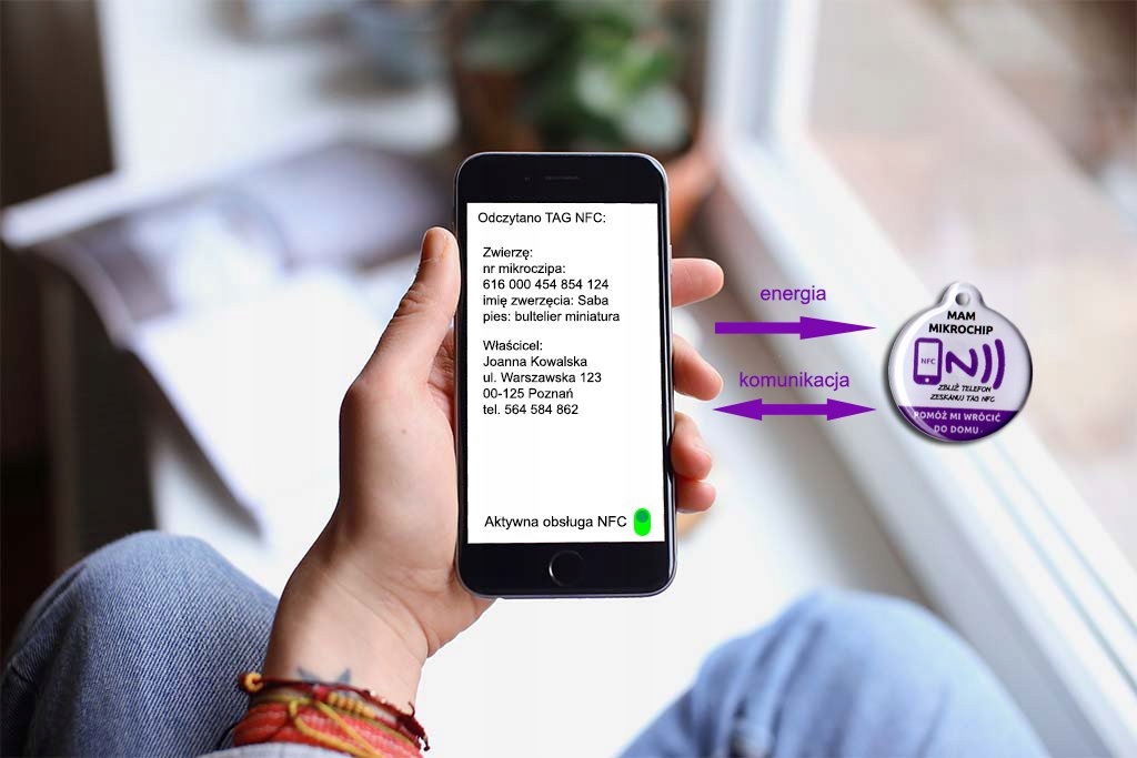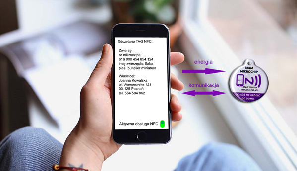 Просто поднесите телефон к идентификатору и прочитайте сохраненные информация о владельце животного!