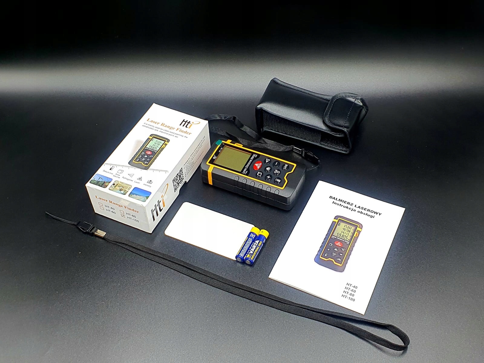 W zestawie znajduje się dalmierz, pudełko,pokrowiec , uchwyt instrukcja w j.polskim oraz j.angielskim.+ baterie alkaiczne VARTA INDUSTRIAL do użytku przemysłowego/profesjonalnego.
