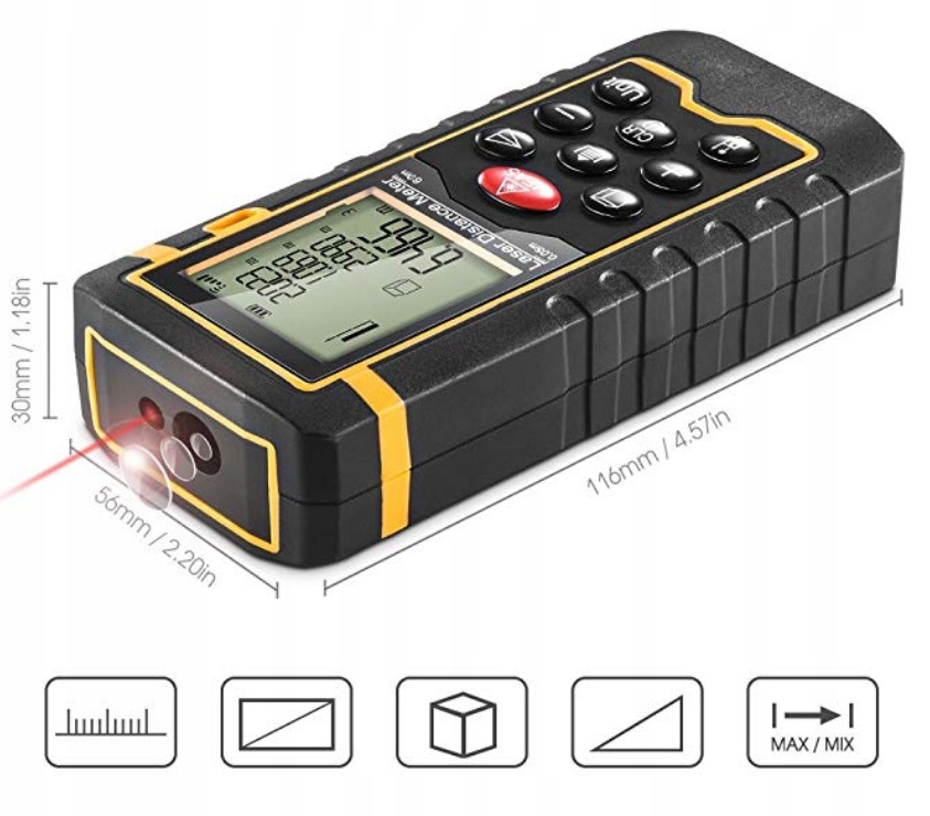 Dalmierz laserowy ma szeroki zakres zastosowań w budownictwie i przemyśle. Jest bardzo przydatny i wygodny, dając dokładny pomiar odległości, powierzchni i objętości, zwłaszcza w dużych obszarów, takich jak pokoje, apartamenty, budynki, fabryki, magazyny, ogrody, drogi, infrastruktury.
