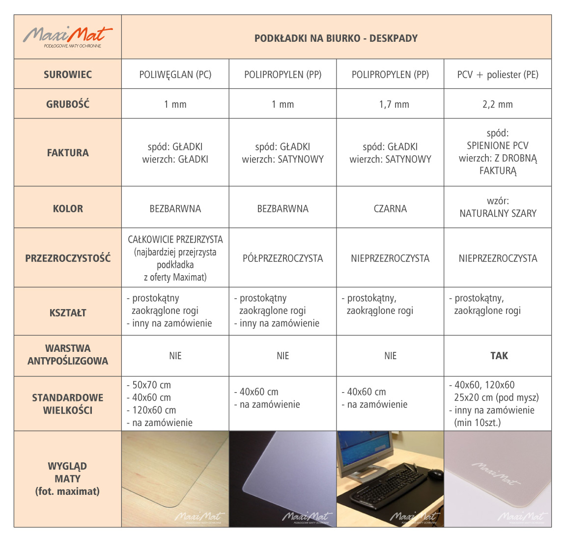 Ниже приведено сравнение всех видов настольных/настольных ковриков, которые мы предлагаем: