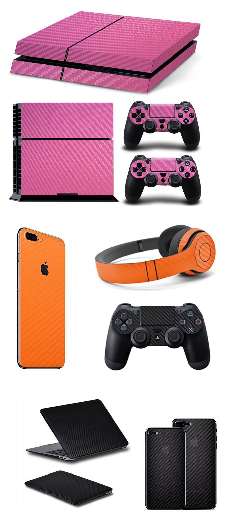 Folią można również okleić telefon, konsolę, laptop, tablet, kokpit samochodowy itp. Jest imitacją włókna węglowego, posiada delikatną strukturę.