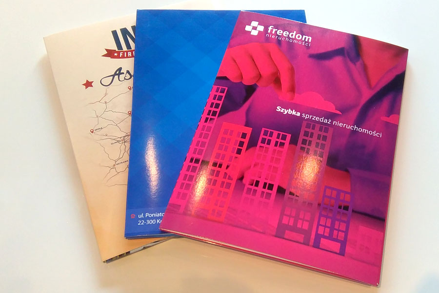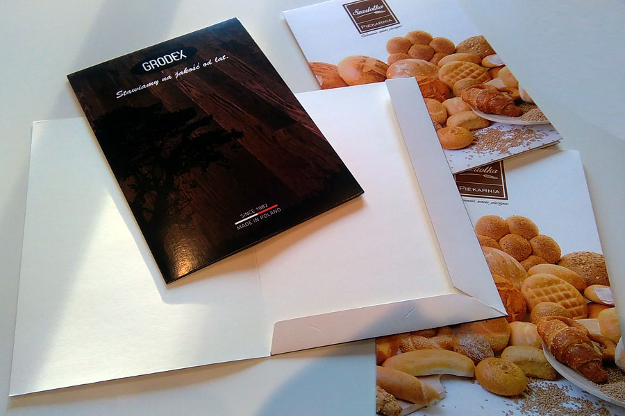 - druk pełno kolorowy przód i tył (po rozłożeniu teczka wewnątrz jest biała)
