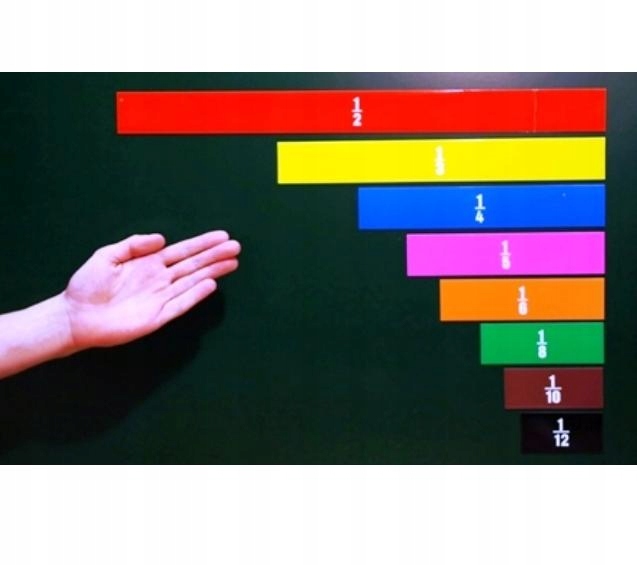Moduł jedności > 1 sztuka 1/2 > 2 szt. 1/3 > 3 szt. 1/4 > 4 szt. 1/5 > 5 szt. 1/6 > 6 szt. 1/8 > 8 szt. 1/10 > 10 szt. 1/12 > 12 szt. Każdy z ułamków jest odpowiednio opisany cyframi.