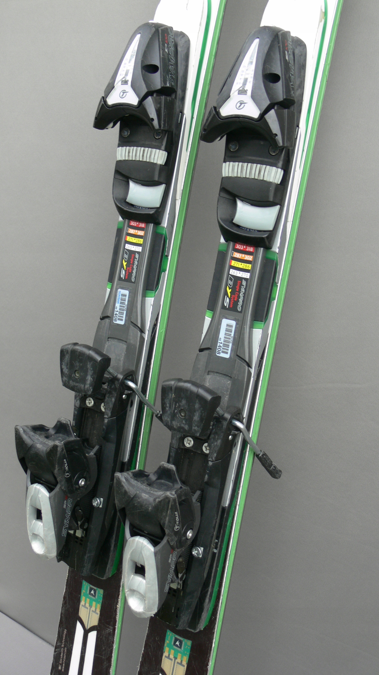 Narty używane z kolekcji sezonu 11/12 HEAD SUPERSHAPE I.MAGNUM dł. 163cm ; taliowanie 120-71-106 ; promień skrętu 12,4m ; z wiązaniami TYROLIA SYMPRO SP100(zakres 2,5 - 10), na dł. skorupy buta 263 - 391mm.