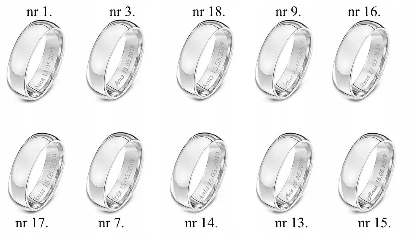 -treść graweru (napisu) wewnątrz obrączek oraz nr czcionki ze zdjęcia, polecana czcionka nr 16