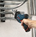 Piła szablasta GSA 12V-14 to bardzo lekka (zaledwie 1,2kg), poręczna i wydajna piła akumulatorowa w formacie kieszonkowym. Przeznaczona do cięcia drewna oraz materiałów drewnopochodnych, stali, metali kolorowych i wszelkich tworzyw sztucznych, a dzięki swoim niewielkim gabarytom (3-krotnie mniejsza od standardowej piły szablastej) jest idealnym narzędziem do wszelkich prac pilarskich w ciasnych i trudno dostępnych miejscach. Technologia litowo-jonowa sprawia, że piła GSA 12V-14 jest nie tylko kompaktowym, ale także ekstremalnie wydajnym urządzeniem – maksymalna głębokość cięcia w litym drewnie to 65mm. Piła została wyposażona w najnowsze systemy przeciw przeciążeniowe – system ECP.
