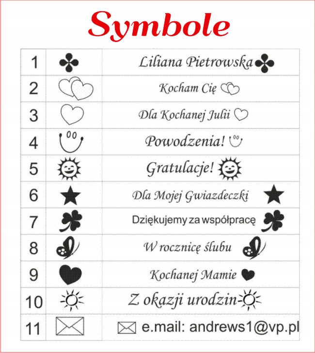 Pamiętaj o podaniu koloru zestawu oraz tekstu do wygrawerowania