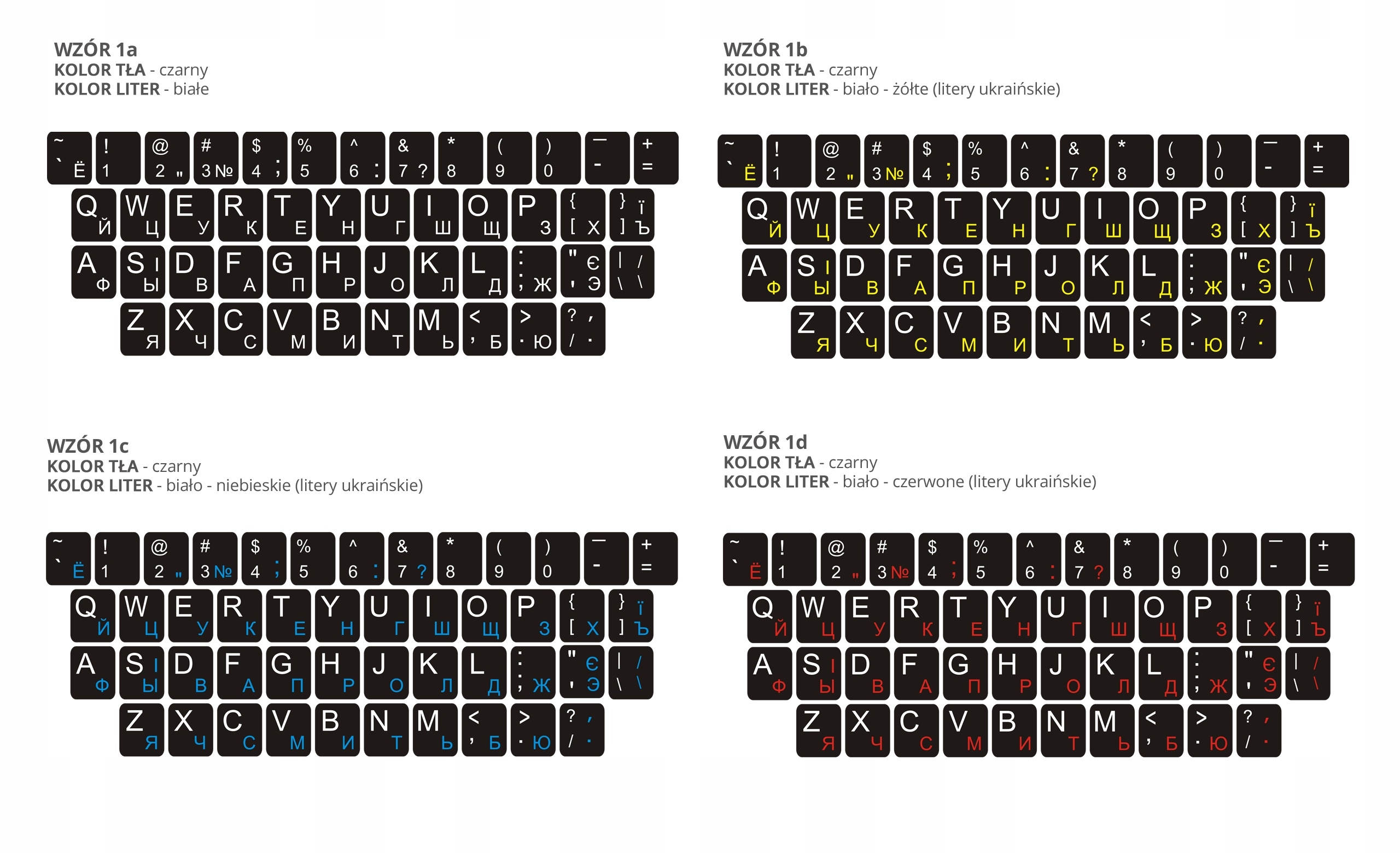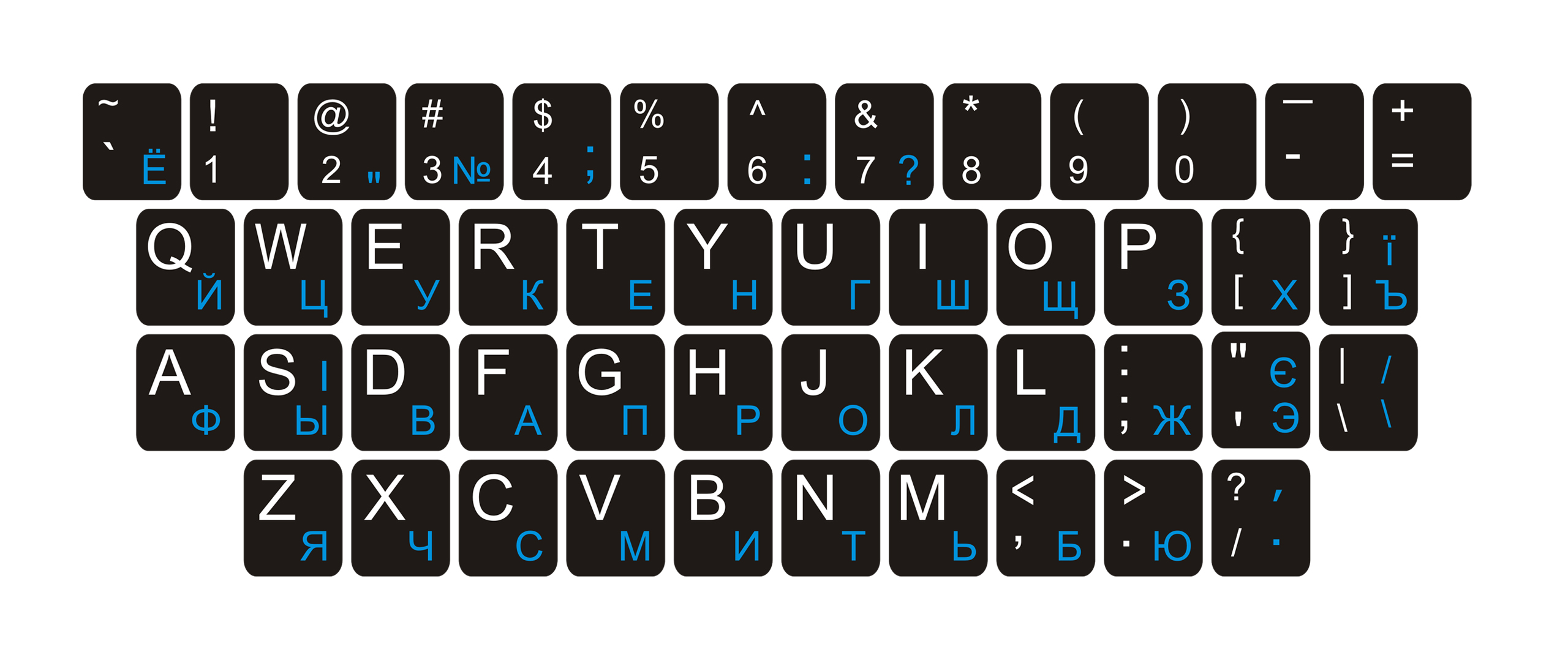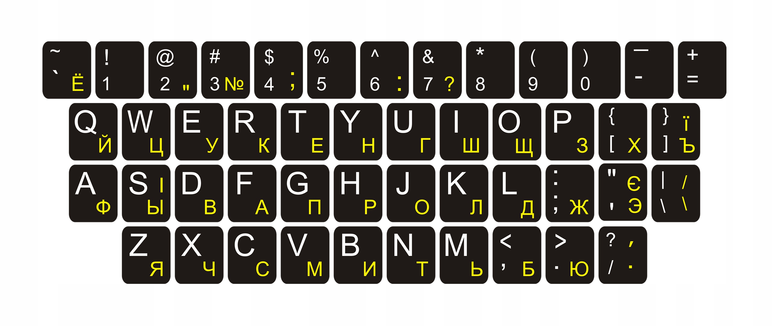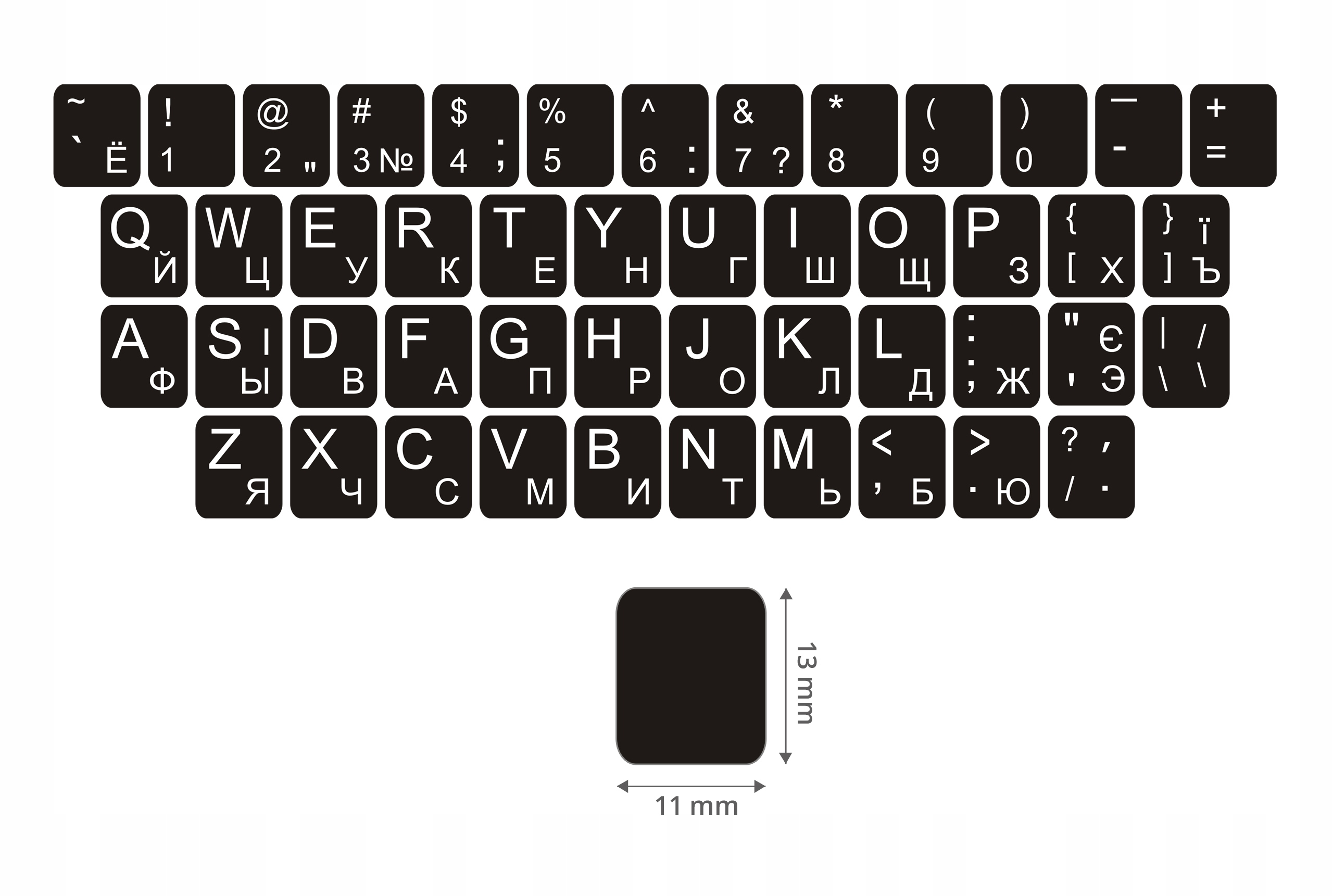 Наклейки на клавиатуру QWERTY КИРИЛЛИЦА УКРАИНСКАЯ - РУССКАЯ 11x13 мм - 13x13 мм