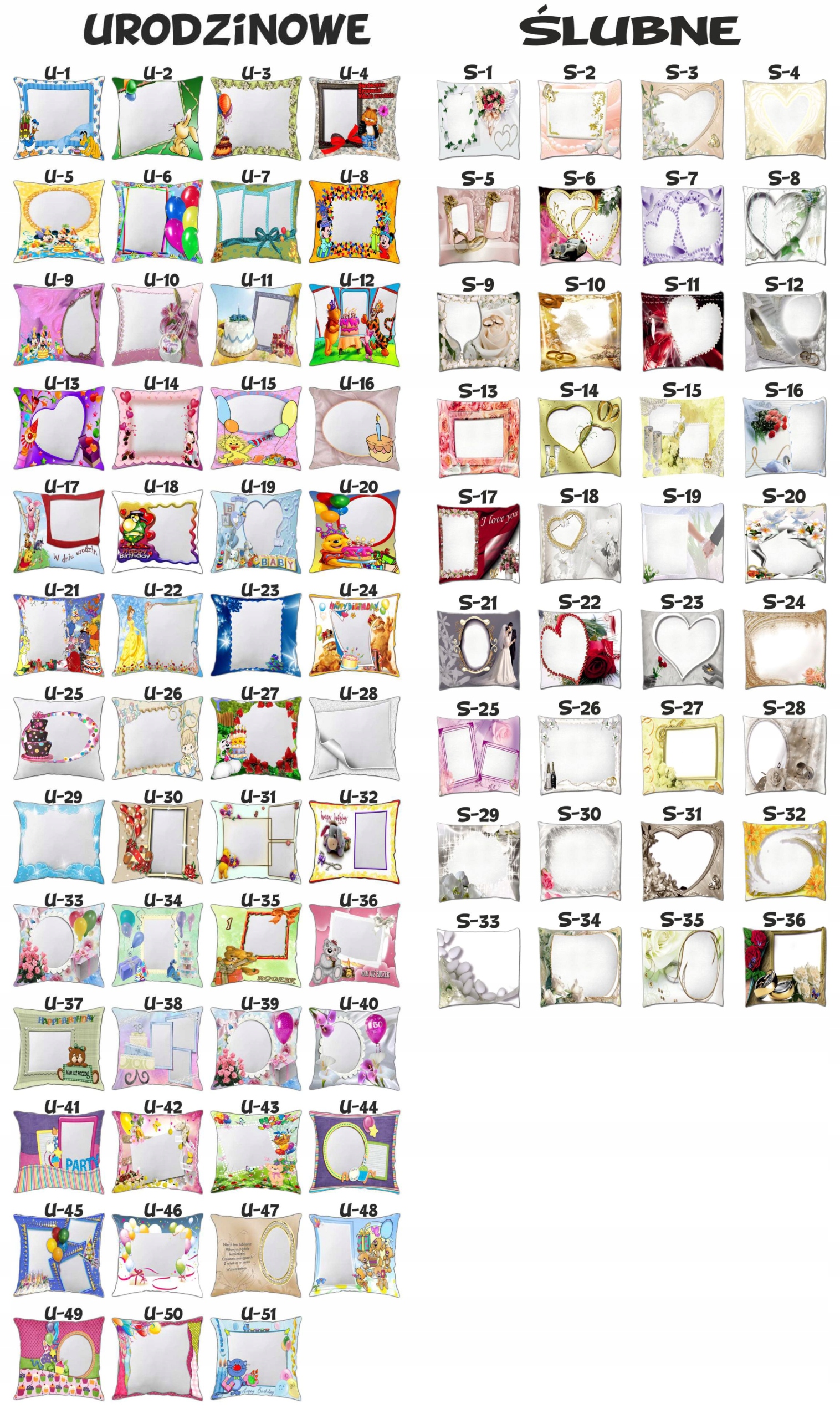 Na poduszce możesz umieścić samo zdjęcie lub wkomponować je w ramkę, której wzory znajdziesz poniżej.