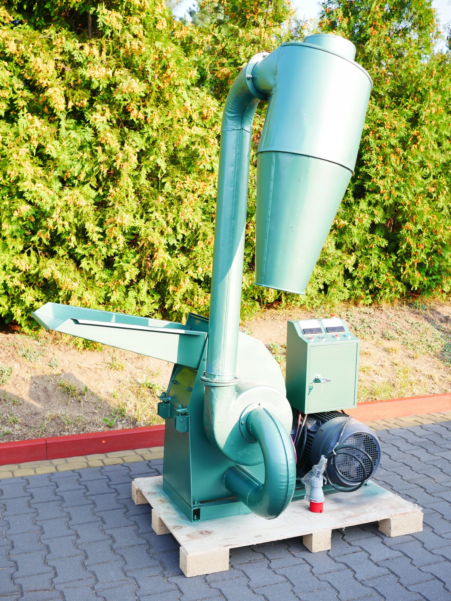 Młyn bijakowy przeznaczony jest do rozdrabniania biomasy np. słoma, łodygi, kawałki płyt meblowych, drewno, słoma, liście i wiele wiele więcej na materiał idealny do produkcji pelletu. Jest to również idealne urządzenie do rozdrabniania produktów spożywczych np. orzechów, ryżu czy innych roślin. Urządzenie jest przeznaczone do pracy przemysłowej niemalże 24 h na dobę przerabiając do 500 kg biomasy na godzinę . W idealnych warunkach młyn bijakowy potrafi przerobić materiału na dwie peleciarki jednocześnie !! Jedynym warunkiem jest wstępnie osuszony towar do 18% wilgotności oraz średnica materiału do 50 mm (czyli np. gałęzie o średnicy ręki!)