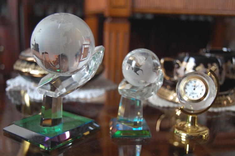 Doskonale prezentuje się w kancelarii, biurze, apartamencie, gabinecie, salonie, holu. Globus wykonany jest ze szkła kryształowego, szlifowany laserowo.Globus spoczywa na podstawce w kształcie ręki.