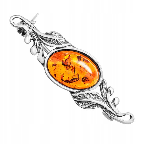 Ponadczasowo piękna broszka ze słonecznego bursztynu bałtyckiego i prawdziwego srebra w modnym stylu vintage. Idealna na upominek dla wyjątkowej osoby.