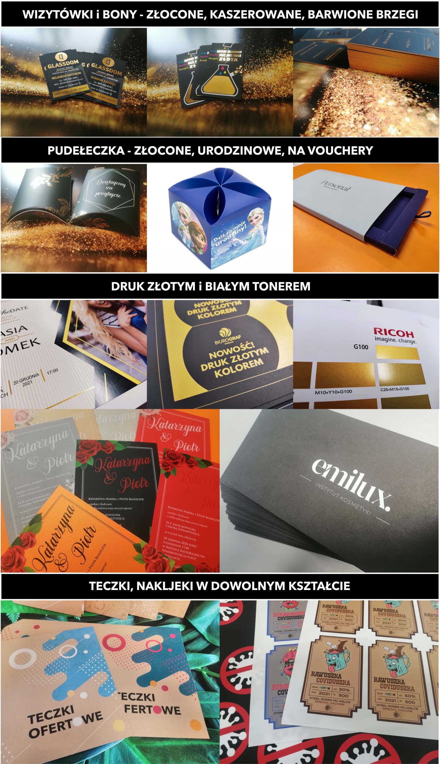 Rodzaj papieru: Kreda 350 g mat lub błysk (w zależności od dostępności papieru - gdy brak matowego, to drukujemy na błysku)