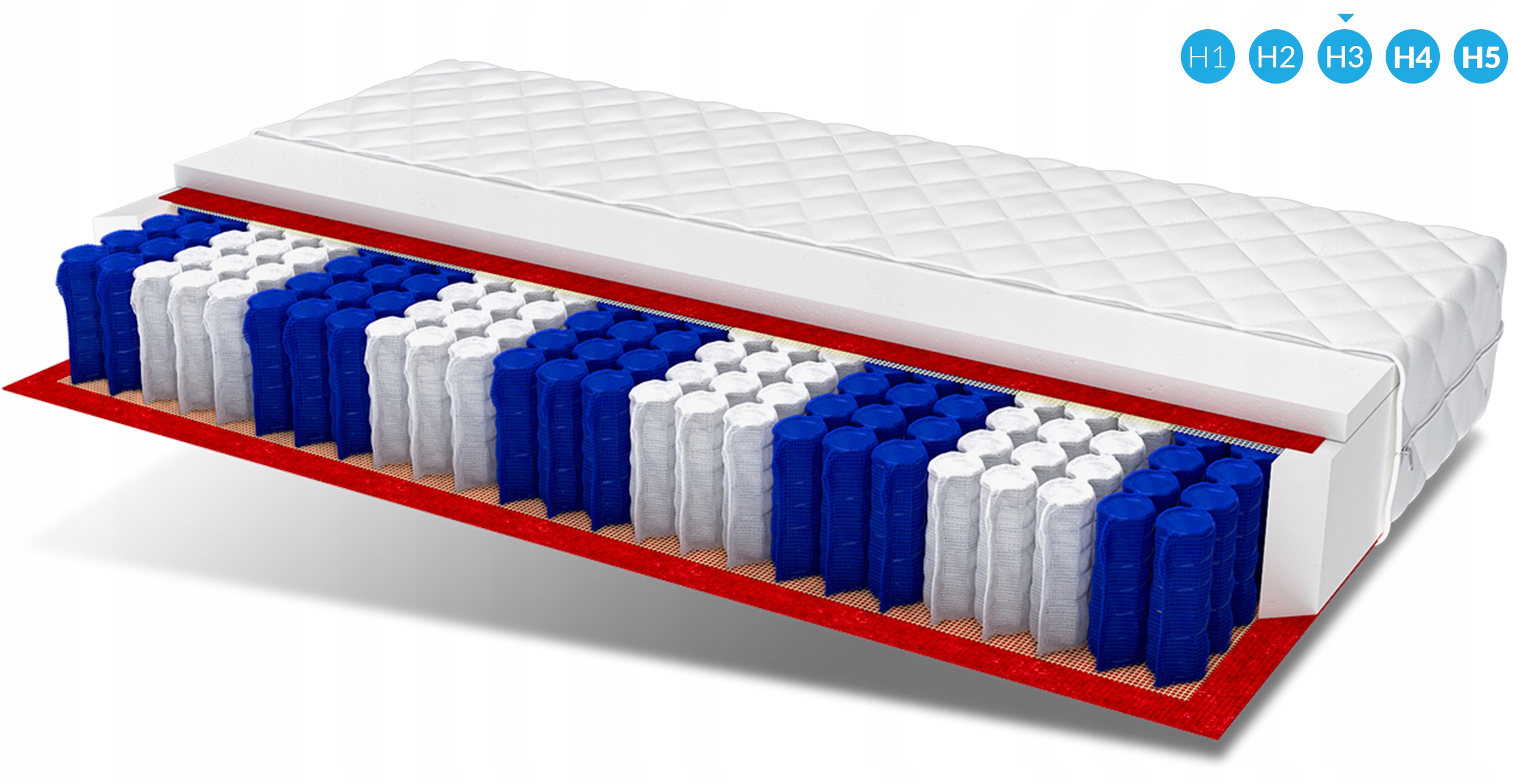 Благодаря разнообразным зонам твердость обеспечивает эргономичное положение тела во время отдыха. Независимая работа пружин устраняет эффект изгиба большой площади матраса при давлении на его небольшую площадь, так что любой вид вращения или сверления не будет ощущаться для другого человек.