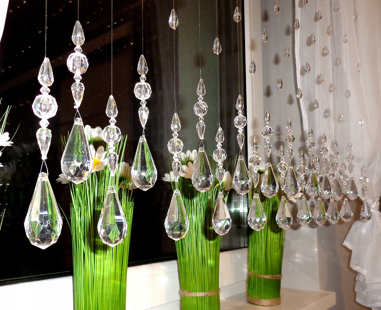 Zawieszkę można powiesić na każdym karniszu za pomocą pętelki wykonanej na końcu każdej zawieszki. Pasuje na karnisz rurka jak i ten tradycyjny z żabkami, agrafkami itd.