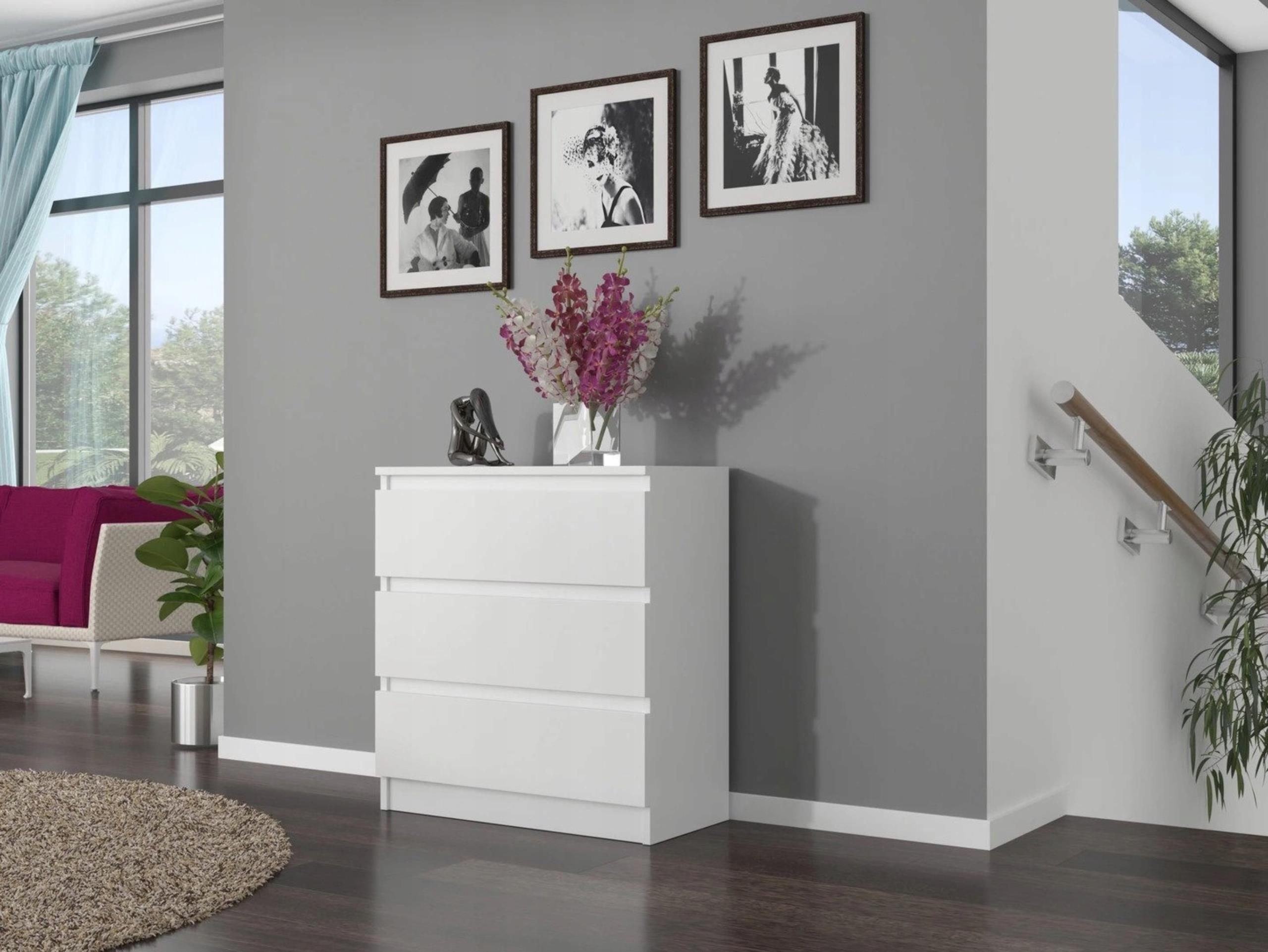 Nowoczesna komoda z linii MODERN, stworzony dla ludzi, którzy cenią sobie nowoczesny styl i elegancję.Odnowi wnętrze każdego salonu, biura czy pokoju młodzieżowego. Konstrukcja jest minimalistyczna, ale solidna i trwała. Ergonomiczne wymiary zapewniają swobodne umeblowanie pomieszczenia
