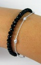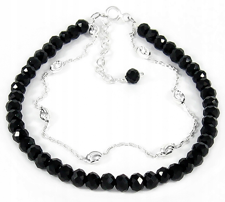 Браслет из блестящих граненых кристаллов черного цвета с декоративным элементом в форма цепочки с оливками.
