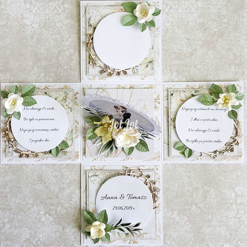 Pudełko exploding box, rozmiar 10x10x10cm, wieczko wys. 3,5 cm.
