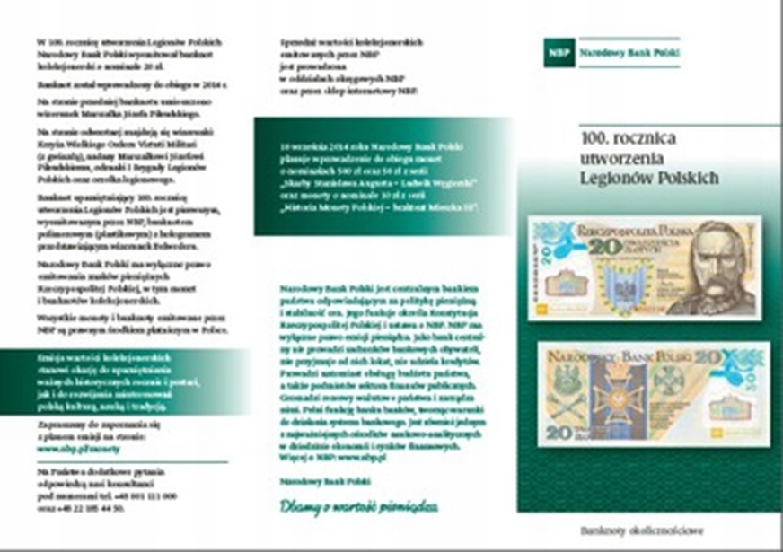Mam do sprzedania foldery do banknotu - 100. rocznica utworzenia Legionów Polskich.