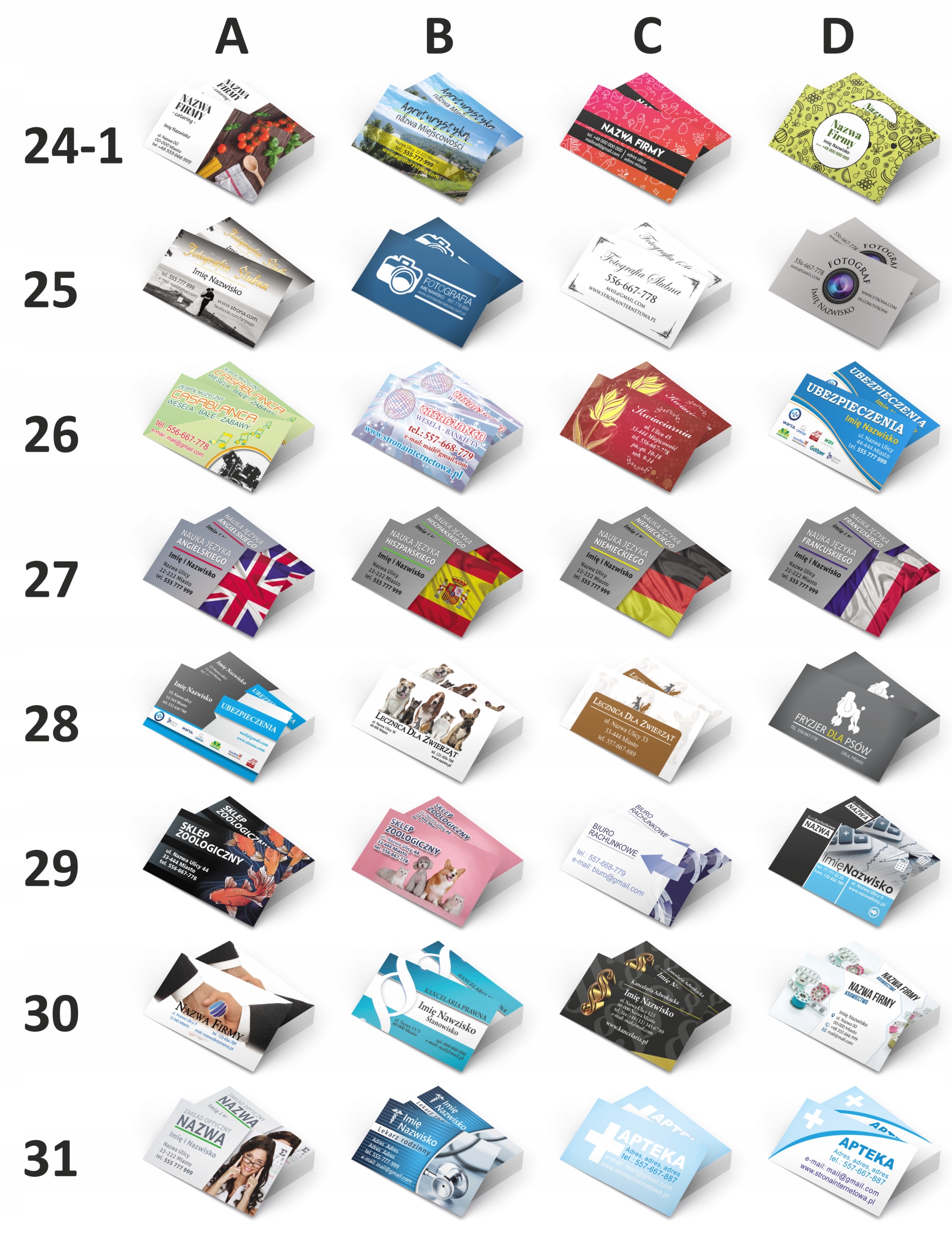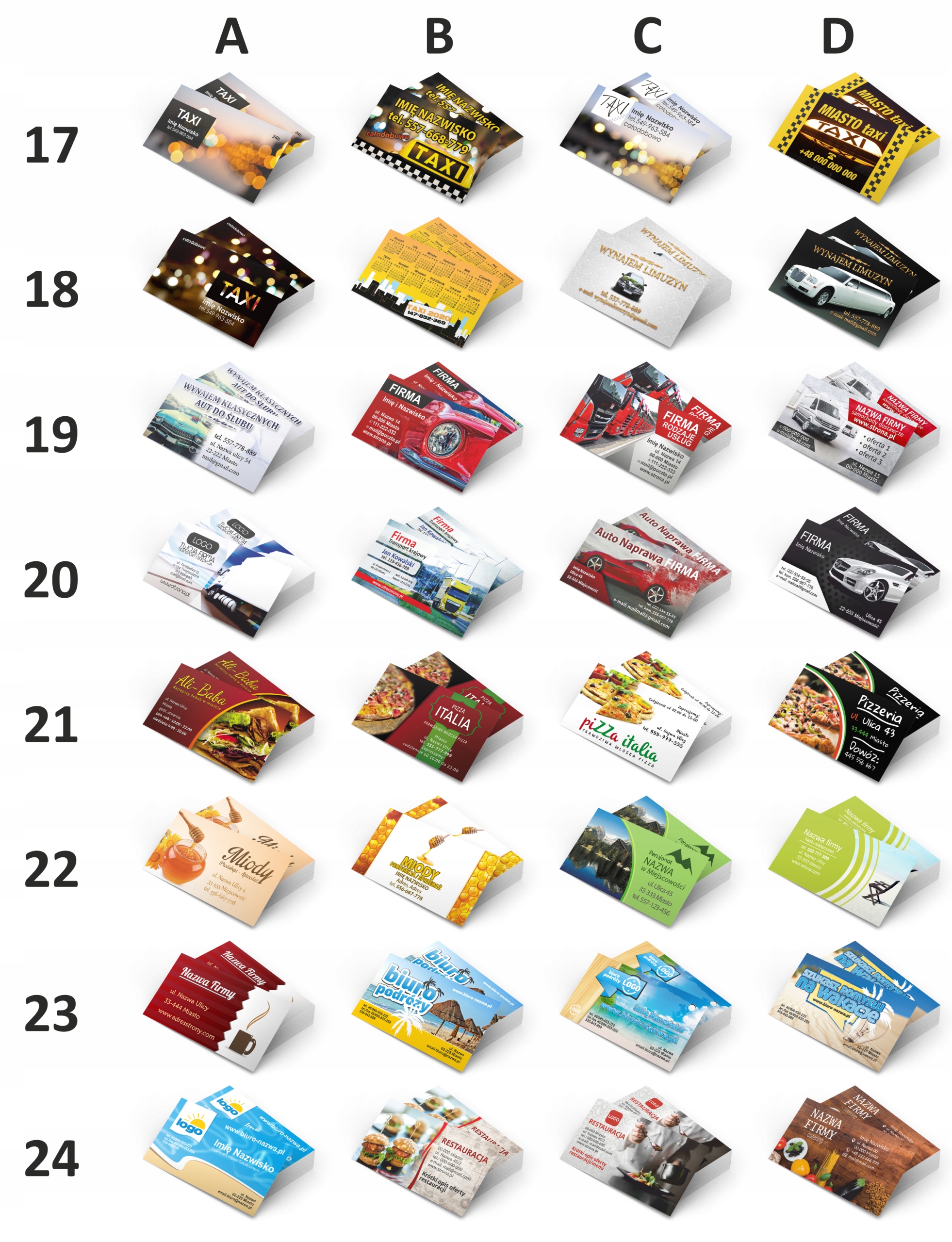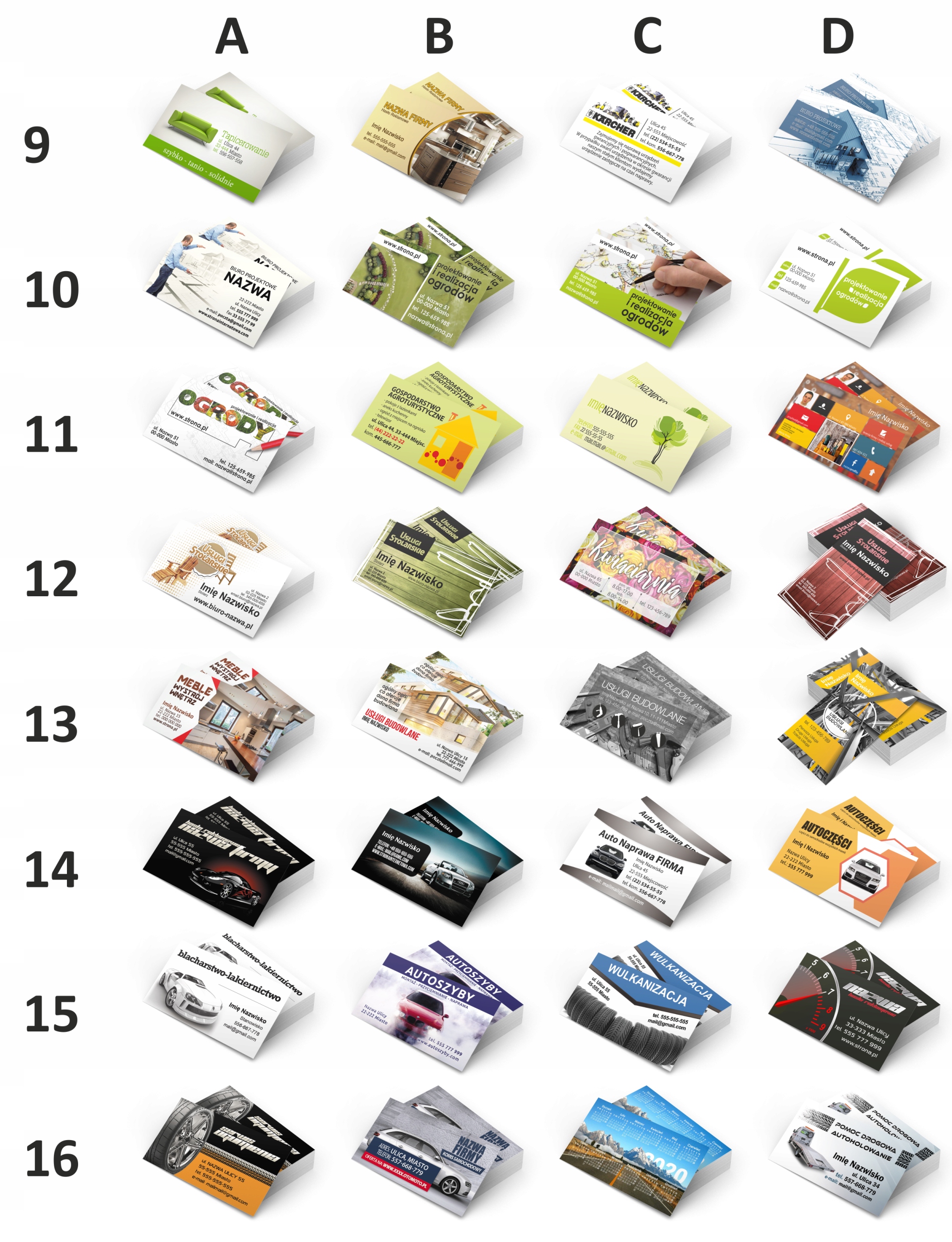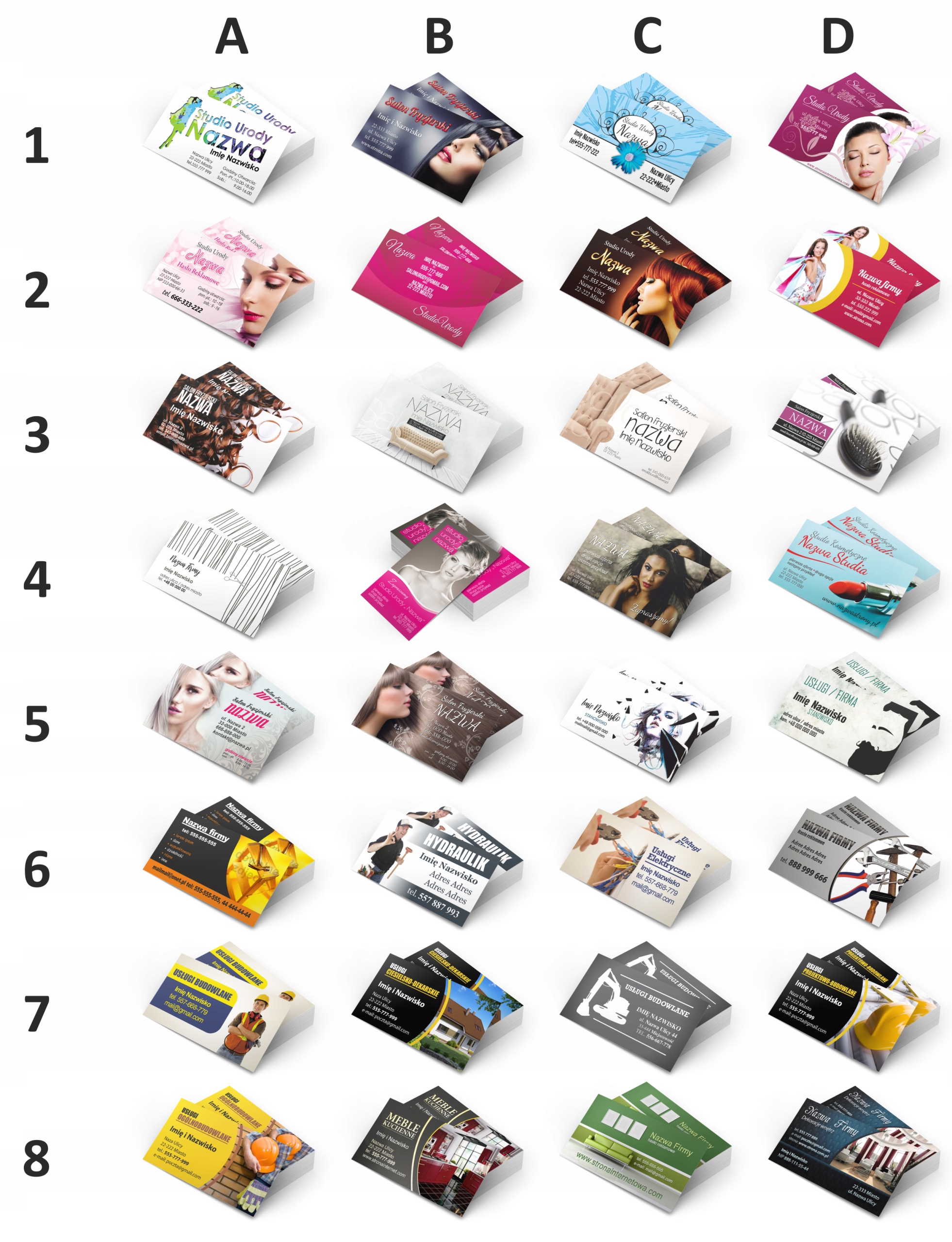 Sprawdź wśród naszych gotowych szablonów! Łącznie ponad 240 różnych projektów z poszczególnych branż! Sprawdź poniżej i wybierz odpowiednią wizytówkę dla siebie!