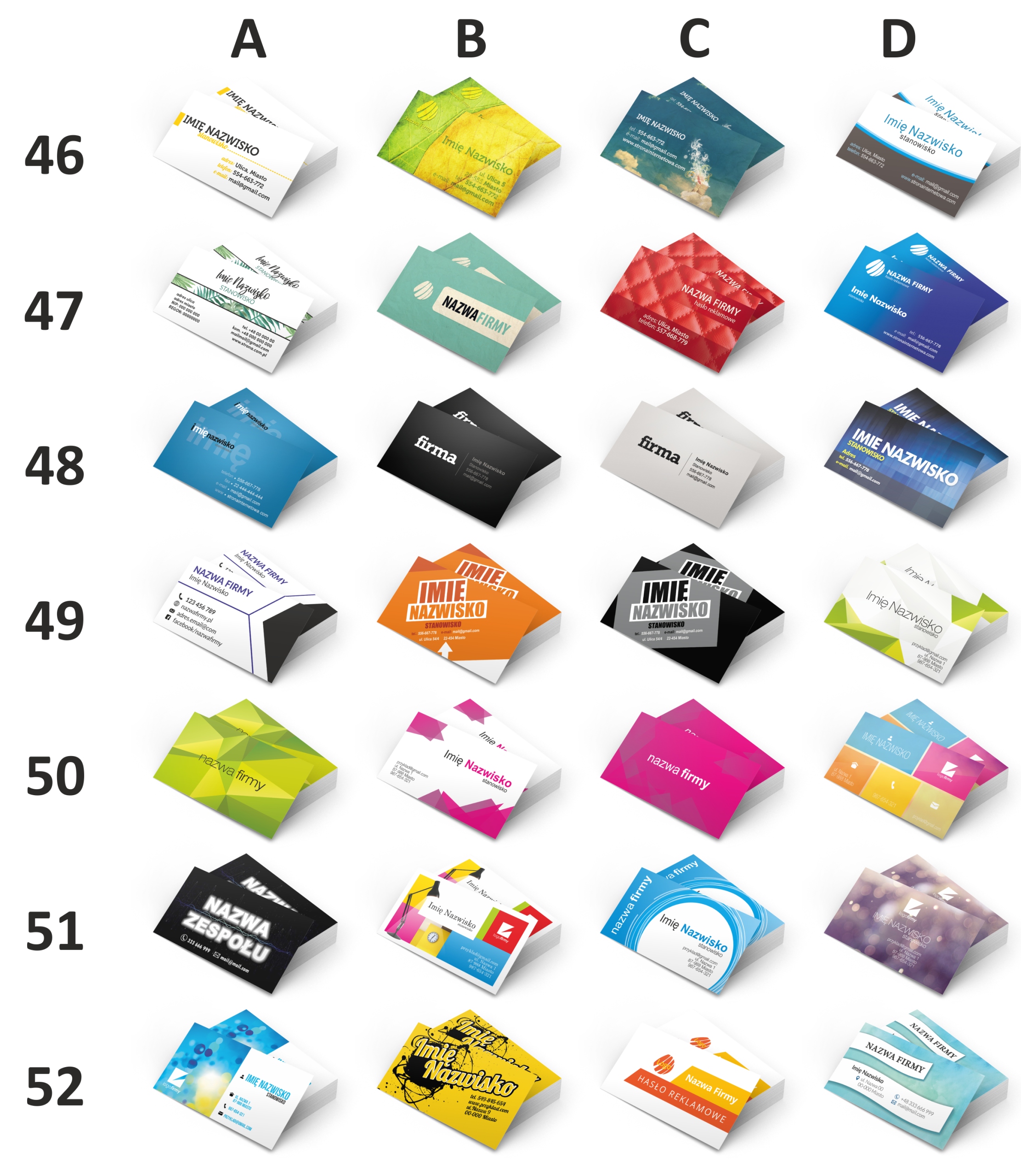 W naszej ofercie znajdziesz bogatą gamę wizytówek, w zależności od Twoich potrzeb i nakładów finansowych.