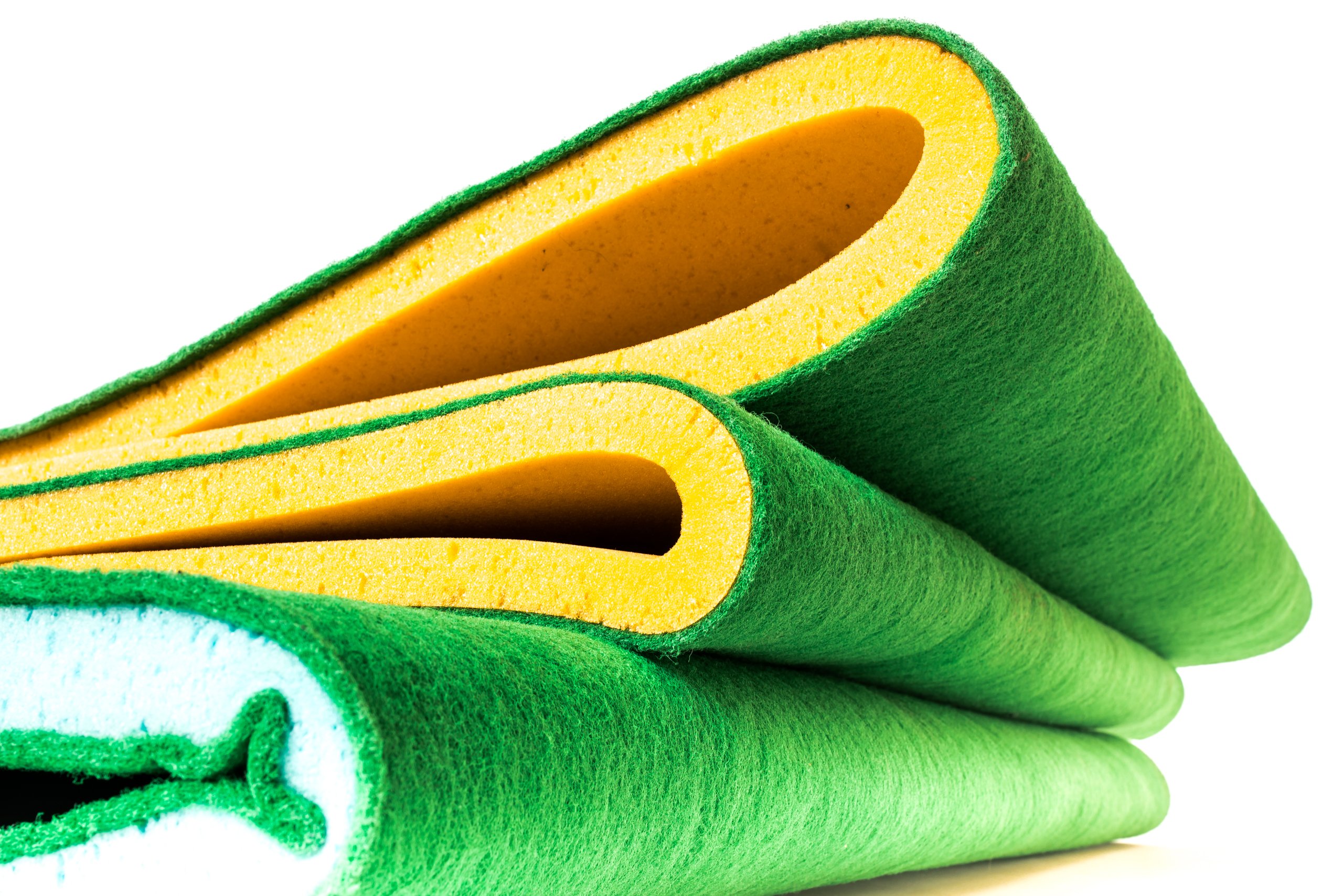 2 - Warstwa wytrzymałej, sztywnej włókniny odpornej na ścieranie i wytrzymałej na uszkodzenia, która chroni miękką piankę przed zniszczeniem.