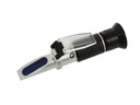 Profesjonalny refraktometr do pomiarów płynów eksploatacyjnych samochodów osobowych, ciężarowych i autobusów. Przeznaczony jest do określania temperatury zamarzania płynu do spryskiwaczy, płynu chłodzącego glikolu propylenowego i glikolu etylowego. Podaje również zakres gęstości elektrolitu.Zestaw zawiera pipetkę do pobierania próbek oraz szmatkę do czyszczenia. Wszystko zapakowane w solidne plastikowe pudełko.