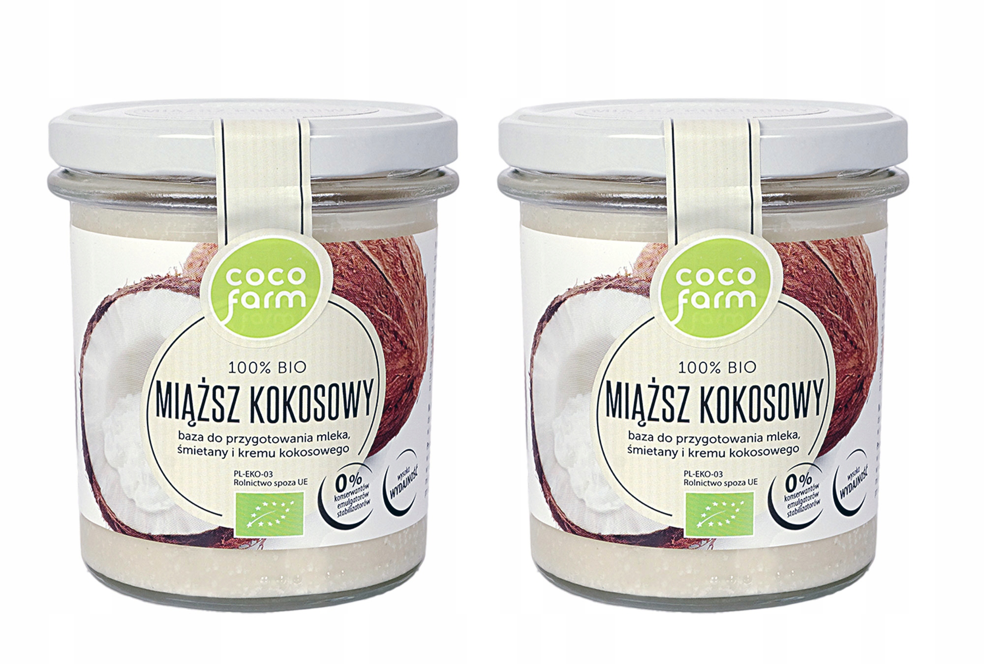 Miąższ kokosowy 100% BIO to baza do przygotowania mleka, śmietany i kremu z kokosa.