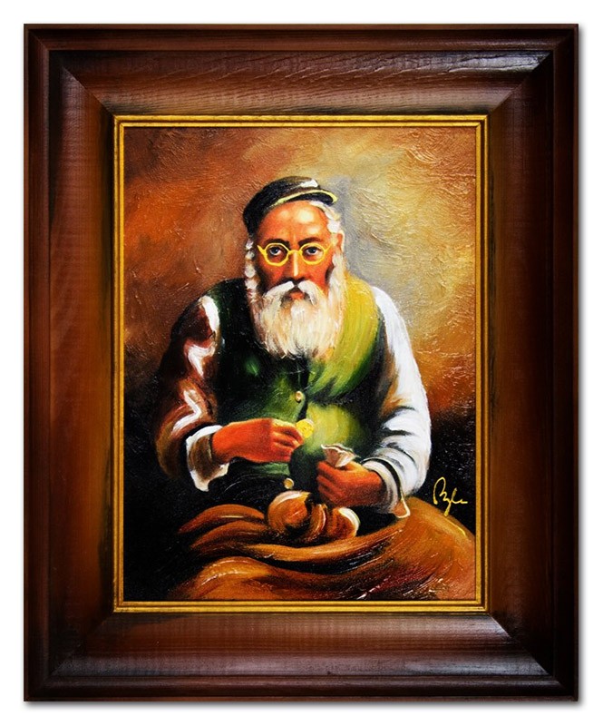 "ŻYD W KAMIZELCE I Z SAKIEWKĄ" - OBRAZ OLEJNY, NAMALOWANY RĘCZNIE NA PŁÓTNIE, NACIĄGNIĘTY NA BLEJTRAM i oprawiony W PIĘKNĄ, STYLOWĄ RAMĘ.