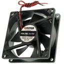 Zasilanie wentylatora 12V DC podłącza się do wyprowadzonych przewodów o długości około 25cm, widocznych w prawym, górnym rogu obudowy.